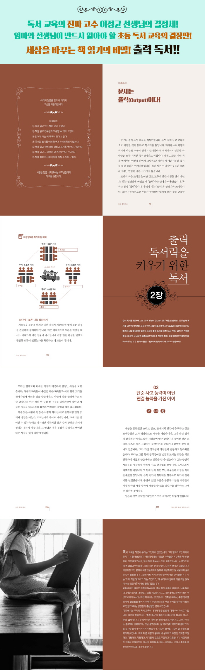 P.12 : ÀÚ½ÅÀÇ »ý°¢À» ÀÚ½ÅÀÇ ¾ð¾î·Î ¸»ÇÏ°í ¾²Áö ¸øÇÏ´Â ¾ÆÀ̵éÀ» ÁöÄѺ¸¸ç, µ¶¼¿Í ¹è¿òÀÇ ÀÇ¹Ì¿Í Áö½ÄÀÇ ÇѰè, Áö½ÄÀÎÀÇ ºÎ²ô·¯¿òÀ» ´Ù½Ã »ý°¢Çغ¸¾Ò½À´Ï´Ù. »ý°¢ ³¡¿¡ ¾ÆÀ̵éÀÌ ÀÌ·¸°Ô µÈ °ÍÀÌ µ¶¼¸¦ ÅëÇØ Áö½ÄÀ» ÀԷ¸¸ Çϰí Ãâ·ÂÇÏÁö ¸øÇÑ °á°úÀÎ °Í °°¾Æ ¡®µ¶¼ Ãâ·Â¡¯À» ȵηΠ»ï°Ô µÇ¾ú½À´Ï´Ù. ÀԷ¸¸À» Áö»ó ÃÖ´ëÀÇ °úÁ¦·Î »ï¾Ò´ø ºÎ²ô·¯¿î ¸ð½À¿¡¼ ¹þ¾î³ª ÀÌÁ¦´Â ¿ì¸® ¾ÆÀ̵éÀ» Ãâ·ÂÇÏ´Â ¾ÆÀÌ·Î ±æ·¯¾ß ÇÕ´Ï´Ù. ±×°Í¸¸ÀÌ ´äÀÔ´Ï´Ù.