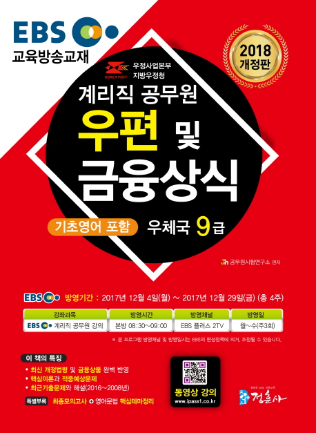 EBS ¿ìÁ¤»ç¾÷º»ºÎ 9±Þ °è¸®Á÷ °ø¹«¿ø ¿ìÆí ¹× ±ÝÀ¶»ó½Ä(2018) JH°ø¹«¿ø½ÃÇ迬±¸¼Ò 22,500¿ø