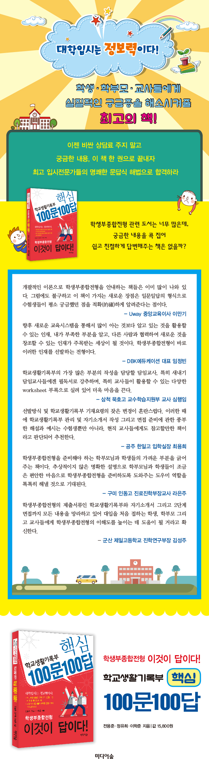 ÀÌ Ã¥Àº ÇлýºÎÁ¾ÇÕÀüÇü¿¡ ´ëÇÑ Àü¹ÝÀûÀÎ ³»¿ëÀ» ¼÷ÁöÇÑ ±³»ç, Çлý, Çкθðµé¿¡°Ô ½ÇÁúÀûÀÎ ±Ã±ÝÁõÀ» ÇØ¼Ò½ÃÄÑÁÙ ÃÖ°íÀÇ Ã¥ÀÌ´Ù. ƯÈ÷ Çлýµé Çб³»ýȰ±â·ÏºÎÀÇ °¡Àå ¸¹Àº ºÎºÐÀÇ ÀÛ¼ºÀ» ´ã´çÇÒ ´ãÀÓ±³»ç, ƯÈ÷ »õ³»±â ´ãÀÓ±³»çµé¿¡°Õ Çʵ¶¼·Î °ÃßÇϸç, ƯÈ÷ ±³»çµéÀÌ È°¿ëÇÒ ¼ö ÀÖ´Â ´Ù¾çÇÑ worksheet ºÎ·ÏÀ¸·Î ½Ç·Á ÀÖ¾î ´õ¿í ¸¶À½À» ²ö´Ù. - »ïô ¹¬È£°í ±³¼öÇнÀÁö¿øºÎ ±³»ç ½ÉÇàÀÓ