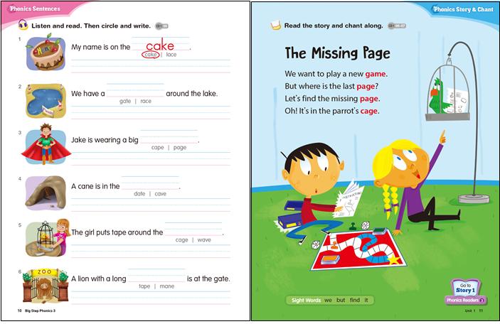[Big Step Phonics with Phonics Readers] ½Ã¸®Áî´Â ÃÑ 4±ÇÀ¸·Î ±¸¼ºµÈ ÆÄ´Ð½º ÇнÀ ±³ÀçÀÔ´Ï´Ù. 1±ÇºÎÅÍ 4±Ç±îÁö ´Ü°èº°·Î ¾ËÆÄºª öÀÚ¿Í ¼Ò¸®, ´Ü¸ðÀ½, Àå¸ðÀ½, ÀÌÁ߸ðÀ½°ú ÀÌÁßÀÚÀ½À» ÇнÀÇϵµ·Ï ±¸¼ºµÇ¾î ÀÖ½À´Ï´Ù. °¢ À¯´ÖÀÇ ÇнÀ Ȱµ¿ ´Ü°èÀÎ Unit Introduction, Letters&Sounds, Phonics Words, Phonics Sentences, Phonics Story&Chant¸¦ ÅëÇØ ¸ñÇ¥ À½°¡¿Í ´Ü¾î»Ó¸¸ ¾Æ´Ï¶ó ¹®ÀåÀ¸·Î ±¸¼ºµÈ Àç¹ÌÀÖ´Â ÆÄ´Ð½º ½ºÅ丮±îÁö ÇнÀÇÒ ¼ö ÀÖ½À´Ï´Ù. ¶ÇÇÑ, ÇнÀ ³»¿ëÀ» æƮ, ¾Ö´Ï¸ÞÀ̼Ç, ¸®ºä °ÔÀÓ µîÀ¸·Î ¼ö·ÏÇÑ Multi-ROM CD¸¦ Ȱ¿ëÇÏ¿© °¢ À¯´ÖÀÇ ÇнÀ ³»¿ëÀ» ´õ¿í Èï¹Ì·Ó°í »ýµ¿°¨ ÀÖ°Ô ¿¬°èÇнÀ ÇÒ ¼ö ÀÖ½À´Ï´Ù. ƯÈ÷, ¾î¸° ÇнÀÀÚµéÀÌ ±âÁ¸ÀÇ ½ºÅ丮ºÏ Àб⿡¼ °æÇèÇÏ°Ô µÇ´Â ¿µ¾î Àб⿡ ´ëÇÑ ºÎ´ã°¨À» ¾ø¾Ö°í º»Ã¥¿¡¼ ÇнÀÇÑ ÆÄ´Ð½º ±ÔÄ¢À» Àû¿ëÇÏ¿© ÀÚ¿¬½º·´°Ô ½ºÅ丮 Àб⸦ ½ÃÀÛÇÒ ¼ö ÀÖµµ·Ï [Big Step Phonics Readers]¸¦ º°µµ·Î Á¦°øÇϰí ÀÖ½À´Ï´Ù. ¡®ÆÄ´Ð½º ¸®´õ½º¡¯¿Í ÇÔ²² ½ÃÀÛÇÏ´Â [Big Step Phonics with Phonics Readers] ½Ã¸®Áî·Î ¾î¸° ÇнÀÀÚµéÀº ÆÄ´Ð½º ±ÔÄ¢»Ó¸¸ ¾Æ´Ï¶ó ¿µ¾î ÀбâÀÇ ±âÃʰ¡ µÇ´Â Àü¹ÝÀûÀÎ ÀÌÇØµµµµ Çâ»ó½Ãų ¼ö ÀÖ½À´Ï´Ù.