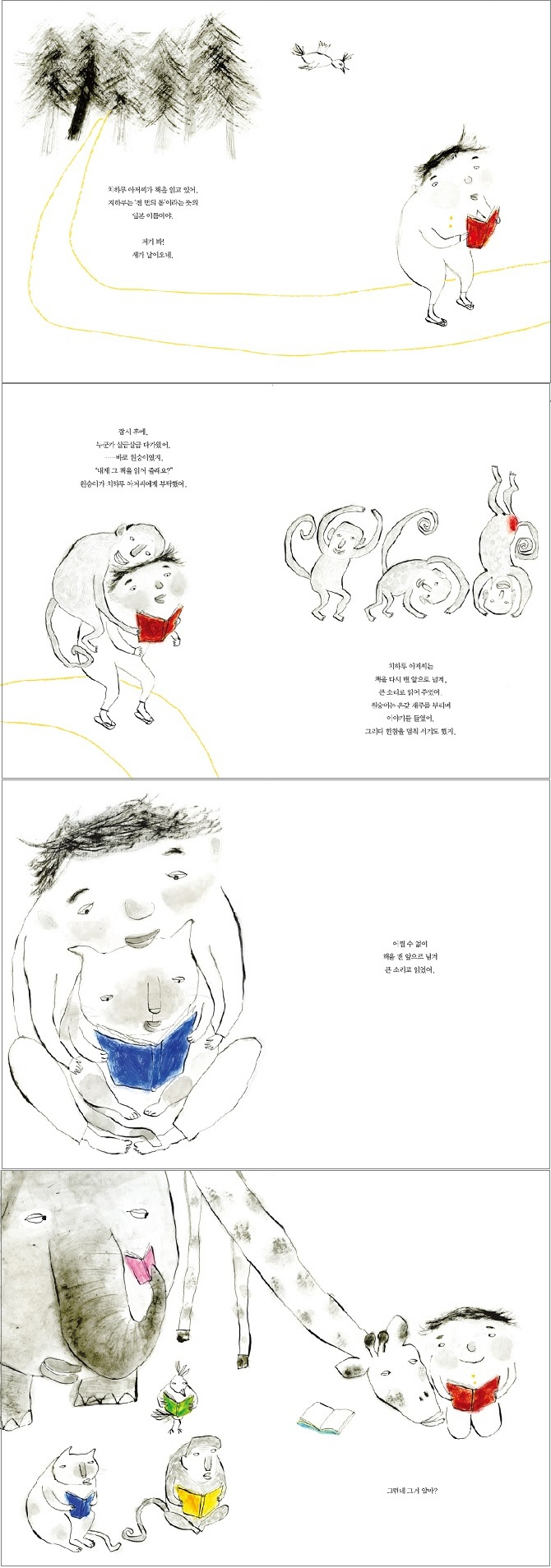 Ã¥À» Àоî ÁÖ´Â »ç¶÷°ú À̾߱⸦ µè´Â µ¿¹°°ú µû¶æÇÑ ±³°¨À» º¸¿©ÁÖ¸ç, Ã¥ ÀбâÀÇ Áñ°Å¿ò°ú Ã¥ Àоî ÁÖ±âÀÇ Á߿伺À» À̾߱âÇÏ´Â ÀÌ Ã¥Àº 2016³â º¼·Î³Ä ±¹Á¦ ±×¸²Ã¥ ¿øÈÀü¿¡ ÀÔ¼±ÇÑ ÀϺ» Å»ýÀÇ °íÄ¡¹Ì ÀÛ°¡ÀÇ ±×¸²À» ¹ÙÅÁÀ¸·Î ¿ì¸®³ª¶ó¿¡¼µµ ¸¹Àº »ç¶ûÀ» ¹Þ´Â ÇÁ¶û½ºÀÇ ¾Æµ¿ ÀÛ°¡ µðµð¿¡ ·¹ºñ°¡ ±ÛÀ» ½è´Ù. Èæ¹éÀÇ °£°áÇÑ ¼±À¸·Î ±×¸° ±×¸² ¼Ó »¡°£»ö Ã¥ÀÌ ´«±æÀ» ²ø¸ç, Ã¥À» ÀÐ¾î ´Þ¶ó°í ´Ù°¡¿À´Â µ¿¹° Ä£±¸µé¿¡°Ô ¾ðÁ¦³ª Å«¼Ò¸®·Î Ã¥À» Àоî ÁÖ´Â Ä¡ÇÏ·ç ¾ÆÀú¾¾ÀÇ ¸ð½ÀÀÌ µû¶æÇÏ°Ô ±×·ÁÁø´Ù. ¾ÆÀÌ °°±âµµ ÇÏ°í ¾î¸¥ °°±âµµ ÇÑ Ä¡ÇÏ·ç ¾ÆÀú¾¾ÀÇ µ¿½ÉÀ» °£Á÷ÇÑ ¸ð½ÀÀº µ¿¹° Ä£±¸µé°ú ´à¾Æ ÀÖ¾î, ¼·Î ±³°¨ÇÏ°í ¼ÒÅëÇϰí ÀÖÀ½À» º¸¿© ÁØ´Ù. ¶Ç Ã¥¿¡ ½Ã¼±À» °íÁ¤ÇÑ Ã¤ Ã¥ Àб⿡ Ç« ºüÁø µ¿¹° Ä£±¸µéÀÇ ¼³·½ÀÌ °¡µæÇÑ Ç¥Á¤¿¡´Â ´©±º°¡°¡ µé·ÁÁÖ´Â À̾߱⸦ µè´Â ½Ã°£ÀÌ ÁÖ´Â ±â»ÝÀÌ Àß ¹¯¾î³´Ù. µ¿¹° Ä£±¸µéÀº È¥ÀÚ Ã¥ Àб⸦ ¸· ½ÃÀÛÇÑ °í¾çÀ̸¦ ¸¸³ª Ã¥À» ÀÐ¾î ´Þ¶ó°í ºÎŹÇÏÁö¸¸ °ÅÀý´çÇϰí, °á±¹ ±ÛÀÚ¸¦ ¹è¿ì°Ô µÈ´Ù. ÀÌÁ¦ ½º½º·Î Ã¥À» ÀÐÀ» ¼ö ÀÖ°Ô µÈ µ¿¹°µéÀÇ ¼Õ¿£ ¾Ë·Ï´Þ·ÏÇÑ Ã¥ÀÌ µé·Á ÀÖ´Ù. È¥ÀÚ Ã¥ Àб⸦ ½ÃÀÛÇÑ µ¿¹° Ä£±¸µé¿¡°Ô Ã¥ÀÌ ÁÖ´Â ¶Ç ´Ù¸¥ »õ·Ó°í ½Åºñ·Î¿î ¼¼°è°¡ ¿¸° °ÍÀÌ´Ù. ¿©±â¼ ÀÛ°¡´Â ¾ÆÀÌ¿¡°Ô Ã¥ Àоî Áֱ⿡¼ ²À ÀØÁö ¸»¾Æ¾ß ÇÒ °ÍÀ» À̾߱âÇÑ´Ù. ¡°±×·±µ¥, ±×°Å ¾Ë¾Æ? ±×·¡µµ ¸ðµÎµé Ä¡ÇÏ·ç ¾ÆÀú¾¾°¡ Ã¥ Àоî ÁÖ´Â °É Á¦ÀÏ ÁÁ¾ÆÇÑ´ë.¡±