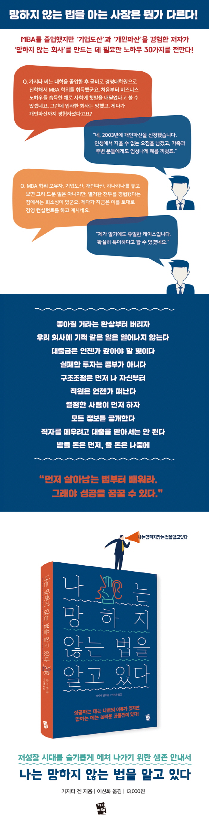 ¾î´À ¿µÈ¿¡¼ ÀÌ·± ´ë»ç°¡ ³ª¿Â´Ù. "°ÇÑÀÚ°¡ ¿À·¡ ³²´Â°Ô ¾Æ´Ï¶ó ¿À·¡ ³²´ÂÀÚ°¡ °ÇÑÀÚ´õ¶ó" ¼º°øÀ» À§ÇÑ °æ¿µµµ¼´Â ¸¹Áö¸¸, ÀÌ·¸°Ô ¸ÁÇÏÁö ¾Ê´Â ¹ýÀ» ¼³¸íÇÑ Ã¥Àº ¾ø¾ú´Ù! ¼º°øÇϴµ¥´Â ³ª¸§ÀÇ ÀÌÀ¯°¡ ÀÖÁö¸¸, ¸ÁÇÏ´Â µ¥´Â ³î¶ó¿î °øÅëÁ¡ÀÌ ÀÖÀ¸´Ï±ñ.. -MDÃßõ-