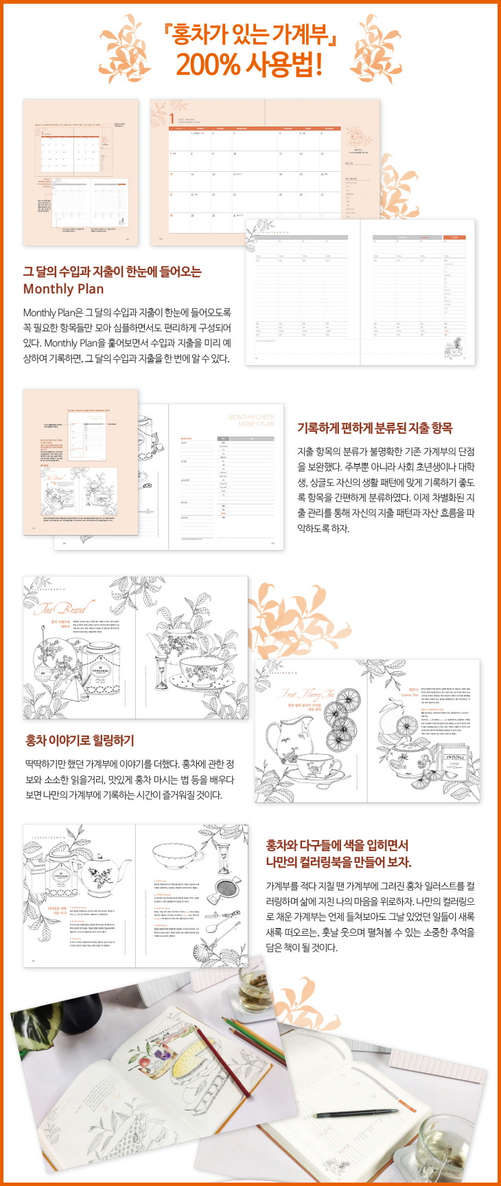 ¡ºÈ«Â÷°¡ ÀÖ´Â °¡°èºÎ¡»´Â ±×·± ±âÁ¸ °¡°èºÎÀÇ ´ÜÁ¡À» ÃÖ´ëÇÑ º¸¿ÏÇØ ¡®È«Â÷¿Í ÇÔ²²ÇÏ´Â Èú¸µ&Ä÷¯¸µ¡¯À̶ó´Â ÄÁ¼ÁÀ¸·Î ´Ù¸¥ °¡°èºÎ¿ÍÀÇ Â÷º°È¸¦ ²ÒÇß´Ù. Ã¥ °÷°÷À» ¼ö³õÀº ¾Æ¸§´Ù¿î ÀÏ·¯½ºÆ®¿Í È«Â÷ ¿¡ÇǼҵå´Â ½Ä»óÇÑ °¡°èºÎ¿¡ Áú¸° »ç¶÷µéÀÇ ¿À°¨À» ¸¸Á·½ÃÄÑ ²÷ÀÓ¾øÀÌ »õ·Î¿î °ÍÀ» Ãß±¸ÇÏ´Â µ¶ÀÚÀÇ È£±â½ÉÀ» ÃæÁ·½ÃÄÑ ÁÙ °ÍÀÌ´Ù. ¾îµð ±×»ÓÀΰ¡? ±ÝÀü Ãâ³³À» ±âÀÔÇÏ´Â µ¥ ÁöÃÆ´Ù¸é ¾Æ±âÀÚ±âÇÏ°í ¼¼¹ÐÇϸ鼵µ È·ÁÇÑ È«Â÷ °ü·Ã ÀÏ·¯½ºÆ®µéÀ» Ä÷¯¸µÇÏ¸é¼ ¸¶À½À» Èú¸µ½Ãų ¼öµµ ÀÖ´Ù. Â÷º°ÈµÈ ÁöÃâ °ü¸®¸¦ ÅëÇØ ÀÚ½ÅÀÇ ÁöÃâ ÆÐÅϰú ÀÚ»ê È帧À» ÆÄ¾ÇÇÒ ¼ö ÀÖÀ» »Ó¸¸ ¾Æ´Ï¶ó È«Â÷¿¡ ´ëÇÑ Á¤º¸ ½Àµæ ¹× Ä÷¯¸µÀ» ÅëÇØ ¸¶À½±îÁö Èú¸µ½Ãų ¼ö ÀÖÀ¸´Ï ±×¾ß¸»·Î Àϼ®»ïÁ¶! ÀÌÁ¦ ¼ÒÀå °¡Ä¡ 200%, ´Ù¸¥ °¡°èºÎ¿Í Â÷º°ÈµÈ ¡ºÈ«Â÷°¡ ÀÖ´Â °¡°èºÎ¡»·Î ´ç½Å¸¸ÀÇ ½ºÅ¸Àϸ®½ÃÇÑ °¡°èºÎ¸¦ ¸¸µé¾î º¸ÀÚ!