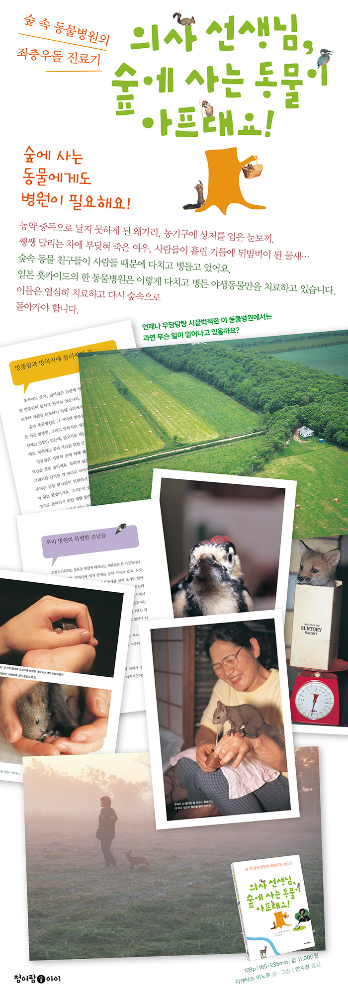 ÀϺ» ȪīÀ̵µ¿¡ ÀÖ´Â ½£¼Ó µ¿¹°º´¿øÀÇ À̾߱â. ³ó¾à Áßµ¶À¸·Î ³¯Áö ¸øÇÏ°Ô µÈ ¿Ö°¡¸®, ³ó±â±¸¿¡ »óó¸¦ ÀÔÀº ´«Åä³¢, ½ß½ß ´Þ¸®´Â Â÷¿¡ ºÎµúÇô Á×Àº ¿©¿ì, »ç¶÷µéÀÌ È기 ±â¸§¿¡ µÚ¹ü¹÷ÀÌ µÈ ¹°»õ µî ´ÙÄ£ ¾ß»ýµ¿¹°À» µ¹º¸´Â ¼öÀÇ»çÀÇ Áø·áÀϱ⸦ ´ã¾Ò½À´Ï´Ù. º¸Áöµµ, µèÁöµµ, ¸Àµµ ¸ø ´À³¢´Â 3Áß Àå¾Ö¸¦ °¡Áø »õ³¢ ¿©¿ì ¡®Çï·»¡¯, ¸¶À½ÀÇ º´À» ¾ò¾î ÀÚ½ÅÀÇ ¹ßÀ» ¹°¾î¶âÀº ºÏ¹æ¿©¿ì ¡®¸àÄÚ¡¯ µµ ÇÔ²² Áö³Â¾î¿ä. À̵éÀº ¿½ÉÈ÷ Ä¡·áÇÏ°í ´Ù½Ã ½£ ¼ÓÀ¸·Î µ¹¾Æ°¡¾ß ÇÕ´Ï´Ù. ¾ß»ýµ¿¹°ÀÇ Ä£±¸°¡ µÇ¾î ÇÑ °¡Á·Ã³·³ »ì¾Æ°¡´Â ½£¼Ó µ¿¹°º´¿ø, ¾ß»ýµ¿¹° ȯÀÚ¸¦ À§ÇØ ÈûÀ» ÇÕÄ£ ¼öÀÇ»ç °¡Á·ÀÇ ¾Æ¸§´Ù¿î µ¿¹°º´¿ø À̾߱â´Â ÁøÁ¤ÇÑ ÀÚ¿¬ »ç¶û°ú µ¿¹° »ç¶ûÀÌ ¹«¾ùÀÎÁö¸¦ º¸¿©ÁÝ´Ï´Ù.