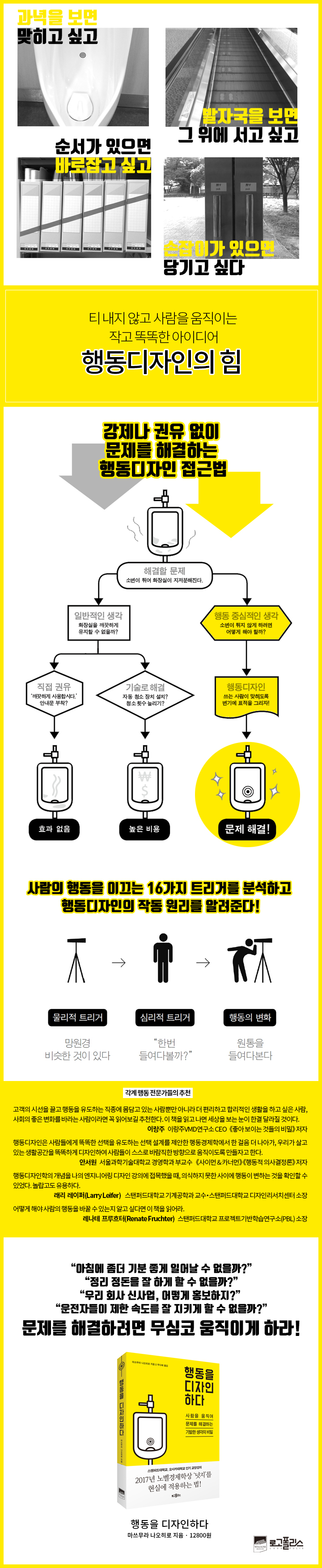 »ç¶÷µé¿¡°Ô ¶È¶ÈÇÑ ¼±ÅÃÀ» À¯µµÇÏ´Â ¼±Åà ¼³°è¸¦ Á¦¾ÈÇÑ Çൿ°æÁ¦Çп¡¼ ÇѰÉÀ½ ´õ ³ª¾Æ°¡, ¿ì¸®°¡ »ì°í ÀÖ´Â »ýȰ°ø°£À» ¶È¶ÈÇÏ°Ô µðÀÚÀÎÇÏ¿© »ç¶÷µéÀÌ ½º½º·Î ¹Ù¶÷Á÷ÇÑ ¹æÇâÀ¸·Î ¿òÁ÷À̵µ·Ï ¸¸µéÀÚ´Â ÇൿµðÀÚÀÎ! ÀÌ Ã¥¿¡¼´Â ´Ù¾çÇÑ »ç·Ê»Ó ¾Æ´Ï¶ó ¿ì¸® »ýȰ ¼Ó¿¡ ÇൿµðÀÚÀÎÀ» ±¸ÇöÇÒ ¼ö ÀÖ´Â ±¸Ã¼ÀûÀÎ ¹æ¹ýÀ» ÇÔ²² Á¦½ÃÇϰí ÀÖ´Ù. ÀÚ½ÅÀ» Æ÷ÇÔÇÏ¿© »ç¶÷µéÀÇ ÇൿÀ» ¹Ù²Ù°íÀÚ ÇÏ´Â ¸ðµç »ç¶÷µé¿¡°Ô º¯È¸¦ À¯µµÇÏ´Â ÁöÇý¸¦ ¾Ë·ÁÁÙ °ÍÀÌ´Ù.