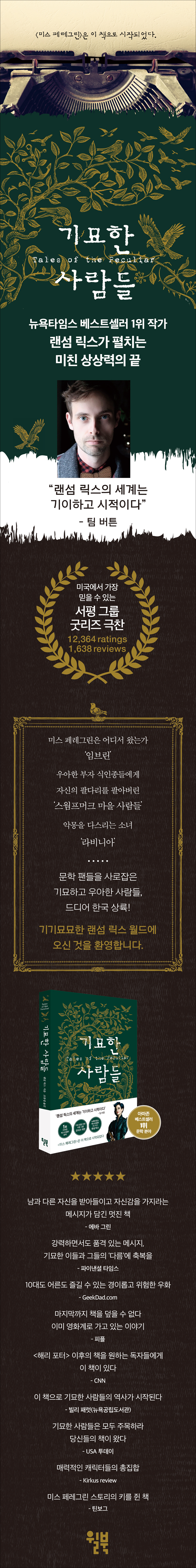 ¹Ì±¹ ¸Þ¸±·£µå¿¡¼ ž Ç÷θ®´Ù ³²ºÎ¿¡¼ ÀÚ¶ú°í ÇöÀç´Â ¾Æ³»¿Í ÇÔ²² ÀÌ»óÇÑ ¾ÆÀ̵éÀÇ ¶¥ÀÎ ·Î½º¾ØÁ©·¹½º¿¡¼ °ÅÁÖÇϰí ÀÖ´Ù. ÄɴϾð ´ëÇп¡¼ ¹®ÇÐÀ», ¼´øÄ¶¸®Æ÷´Ï¾Æ ´ëÇп¡¼ ¿µ»óÀ» °øºÎÇÑ ±×´Â ´ÜÆí¿µÈ·Î ¿µÈÁ¦¿¡ ÀÔ»óÇϱ⵵ Çß´Ù. µ¥ºßÀÛÀΡºÆä·¯±×¸°°ú ÀÌ»óÇÑ ¾ÆÀ̵éÀÇ Áý¡»Àº 20¼¼±âÆø½º»ç¿¡¼ ÆÀ ¹öư °¨µ¶¿¡ ÀÇÇØ ¿µÈ·Î Á¦À۵Ǿú°í, ±×·¡Çȳëºí·Îµµ ¸¸µé¾îÁ³´Ù. ¡º¼È·Ï ȨÁîÀÇ ºñ¹Ð³ëÆ®¡»¡º»çÁøÀ» ¸»ÇÏ´Ù¡»¡º±â¹¦ÇÑ »ç¶÷µé¡» µîÀÇ Ã¥À» ³Â´Ù. À̱¹ÀûÀÎ ¼¶µéÀ» ¿©ÇàÇÏ°í ´õÀ§¿¡ ´ëÇØ Åõ´ú°Å¸®±æ Áñ±â¸ç, ºÎ¾÷À¸·Î ºí·Î°Å¿Í ¿©Çà ÀÛ°¡·Î Ȱ¾àÇϰí ÀÖ´Ù. ±×ÀÇ ±Û°ú ¿µ»óÀº http://ransomriggs.com¿¡¼µµ ¸¸³ªº¼ ¼ö ÀÖ´Ù.