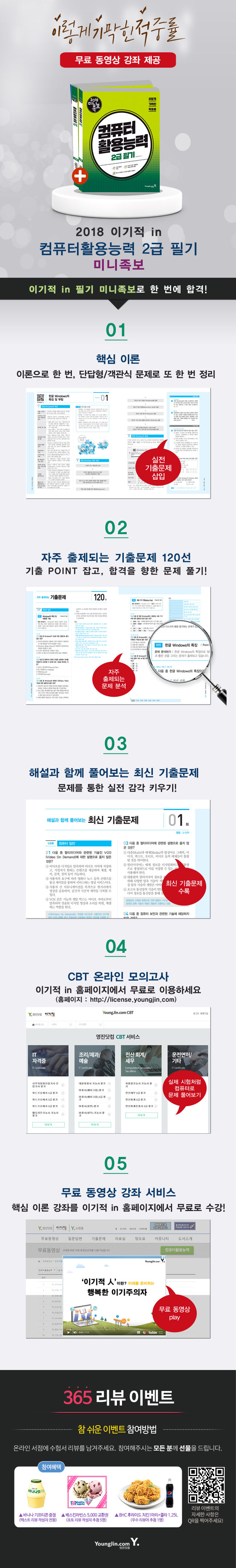 º» µµ¼´Â ªÀº ½Ã°£ µ¿¾È Çʱâ½ÃÇèÀ» ÁغñÇÏ´Â ¼öÇèÀÚ¿¡ ¸ÂÃß¾î ±¸¼ºµÈ ÄÄÇ»ÅÍȰ¿ë´É·Â 1±Þ Çʱ⠹̴ÏÁ·º¸ÀÔ´Ï´Ù. [1±Ç] ÇÙ½ÉÀÌ·ÐÀ» ÅëÇÏ¿© ½ÃÇè¿¡ ÇÊ¿äÇÑ ±âÃʸ¦ ´ÙÁö°í, [2±Ç] ±âÃâ¹®Á¦Áý¿¡¼´Â ÇÙ½ÉÀÌ·ÐÀ» ÂüÁ¶ÇÒ ¼ö ÀÖ´Â µ¿ÀÏÇÑ À¯ÇüÀÇ ÀÚÁÖ ÃâÁ¦µÇ´Â ±âÃâ¹®Á¦ 120¼±, ½±°Ô ÀÌÇØÇÒ ¼ö ÀÖ´Â ÇØ¼³ÀÌ Æ÷ÇÔµÈ ÃֽбâÃâ¹®Á¦ 10ȸºÐÀ» ¼ö·ÏÇÏ¿´½À´Ï´Ù.