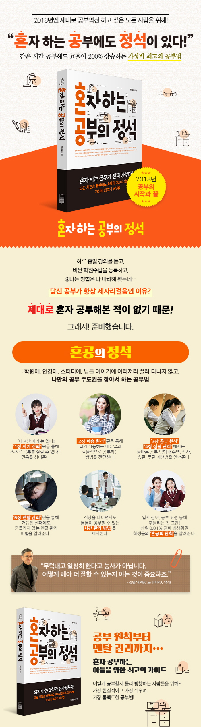 °øºÎ ÀÚ±Ø ÆÌij½ºÆ® <¼¿ï´ë´Â ¾î¶»°Ô °øºÎÇϴ°¡>ÀÇ ÁøÇàÀÚÀÌÀÚ ¡º365 È¥°ø ͏°´õ¡»ÀÇ ÀúÀÚÀÎ ÇÑÀç¿ì ÀÛ°¡°¡ À§Áî´ýÇϿ콺¿¡¼ Æì³½ ¡ºÈ¥ÀÚ ÇÏ´Â °øºÎÀÇ Á¤¼®¡»Àº ¿¬·É ºÒ¹®, ¼ºº° ¹«°üÇÏ°í »ì¸é¼ ¸¸³ª´Â ¾î¶² °øºÎ¶óµµ µÎ·ÆÁö ¾Ê°Ô ¸¸µé¾îÁÖ´Â, °øºÎÀÇ »õ·Î¿î ¹ÙÀ̺í°úµµ °°Àº Ã¥ÀÌ´Ù. Ã¥ ¼Ó¿¡´Â È¥ÀÚ °øºÎÇÏ´Â À̵éÀ» À§ÇÑ ¸ðµç °ÍÀÌ ÃѸÁ¶óµÇ¾î ÀÖ´Ù. ÀÏ´Ü Á¤¼®´ë·Î È¥ÀÚ °øºÎÇÒ ÁÙ¸¸ ¾Ë¸é ´Ù¸¥ °ÍµéÀº ÀúÀý·Î µû¶ó¿Â´Ù. °øºÎ´Â ´©±¸³ª ÀßÇÒ ¼ö ÀÖ´Ù. Áö±ÝºÎÅÍ ¡®È¥°ø¡¯Çϱâ·Î °á½ÉÇϰí, ÀÌ Ã¥¿¡ µîÀåÇÏ´Â 5°¡Áö ¿øÄ¢(Àڱ⠽ŷÚ, ÇнÀ ¿ø¸®, °øºÎ ¿øÄ¢, »ýȰ °ü¸®, ¸àÅ» °ü¸®)¸¸ µû¶ó ÇÏ¸é ¾î¶² ½ÃÇèÀ̵ç ÇÕ°ÝÇÒ ¼ö ÀÖ°í, ¾î¶² °øºÎµç ³ªÀÇ °ÍÀ¸·Î ¸¸µé ¼ö ÀÖ´Ù.