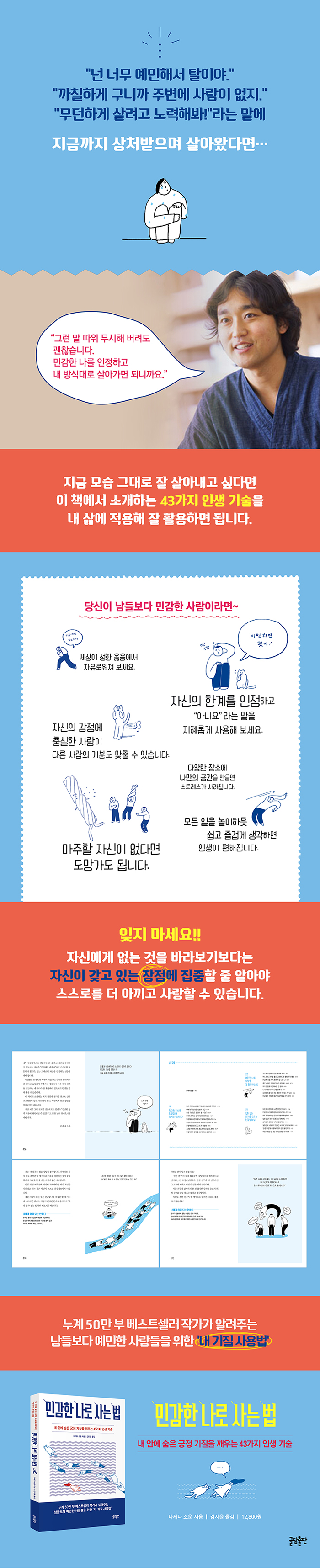 Æò¼Ò ¹Î°¨ÇÑ ¼º°Ý ¶§¹®¿¡ °ÆÁ¤ÇÏ¸é¼ ¡°±âÁ×À¸¸é ¾È µÅ¡± ¡°½Å°æÁúÀûÀ¸·Î ÇൿÇÏ¸é ¾È µÅ¡±¶ó°í ÀÚ½ÅÀ» ºÎÁ¤ÇÏ°í ¾ï´©¸£´Â »ç¶÷Àº ¡°¹Î°¨Çصµ ±¦Âú¾Æ¡±¶ó°í ½º½º·Î¸¦ º¸µë¾î¾ß ÇÕ´Ï´Ù. ÀÖ´Â ±×´ë·ÎÀÇ ÀÚ½ÅÀ» ÀÎÁ¤ÇÏ´Â ¿¬½ÀÀ» ÇØ¾ß ÇÕ´Ï´Ù. _pp.005~006