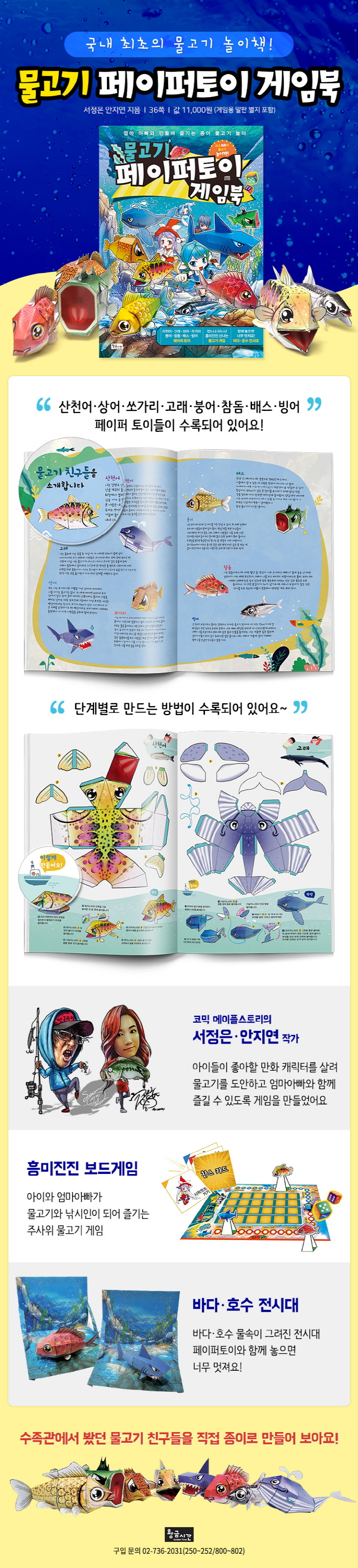 ¹°°í±â ÆäÀÌÆÛÅäÀÌ¿Í °ÔÀÓÀÌ °áÇÕµÈ ±¹³» ÃÖÃÊÀÇ ¹°°í±â ³îÀÌÃ¥ÀÌ´Ù. Á¾À̸¦ Á¢¾î¼ ¹°°í±â ÆäÀÌÆÛÅäÀ̸¦ ¸¸µé°í °¡Á·ÀÌ ÇÔ²² Áñ±æ ¼ö ÀÖµµ·Ï ³¬½Ã¸¦ Å׸¶·Î ÇÑ ¹°°í±â°ÔÀÓÀ» ÇÔ²² ¸¸µé¾î ³Ö¾ú´Ù. ÄÚ¹Í ¸ÞÀÌÇýºÅ丮 ÀÛ°¡ÀÌÀÚ ¿Ç÷ ³¬½ÃÀÎÀÎ ¼Á¤Àº, ¾ÈÁö¿¬ ¸¸È°¡°¡ ¹°°í±â 8Á¾ÀÇ 3D ÆäÀÌÆÛÅäÀÌ µµ¾ÈÀ» µðÀÚÀÎÇßÀ¸¸ç À̸¦ ÀÌ¿ëÇÑ º°µµÀÇ °ÔÀÓÆÇ°ú Ä«µåµµ ¸¶·ÃÇØ ¾ÆÀ̵鿡°Ô ÃÖ°íÀÇ ¹°°í±â ³îÀÌÃ¥À» ¼±»çÇÑ´Ù.