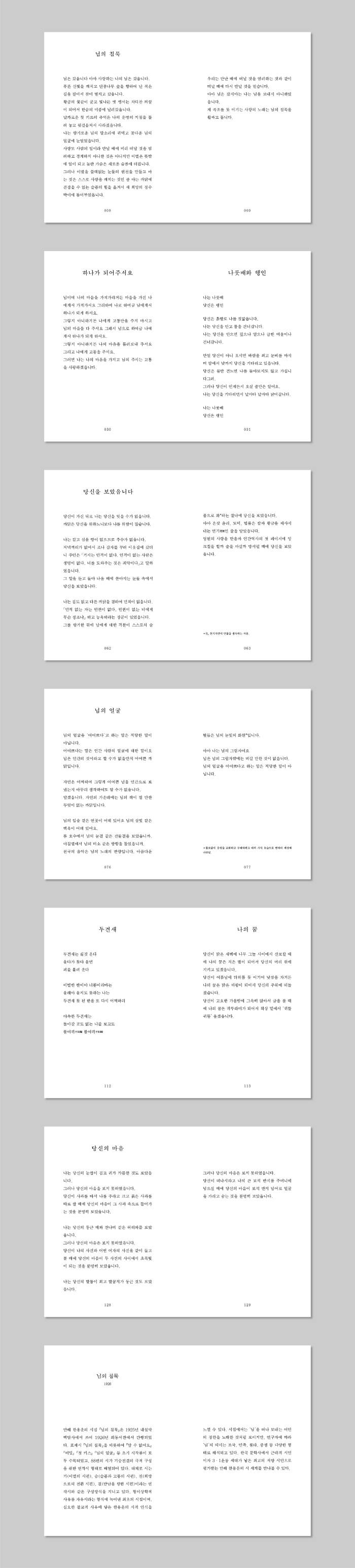 ÀÌÀ½¹®°í ±¹³» ¹®ÇÐÆíÀÇ Àϰö ¹øÂ° Ã¥ ¡º´ÔÀÇ Ä§¹¬¡». ¸¸ÇØ ÇÑ¿ë¿îÀÇ ½Ã´Â ÀþÀº »ç¶÷¿¡°Ô´Â »ç¶ûÀÇ ³ë·¡·Î, Á¾±³Àο¡°Ô´Â ±¸¿øÀÇ ¾ð¾î·Î, ¹ÎÁ·ÁÖÀÇÀÚ¿¡°Ô´Â ¹ÎÁ·ÇعæÀÇ ¿°¿øÀ¸·Î ÀÐÈù´Ù. ¡®´ÔÀº °¬Áö¸¶´Â ³ª´Â ´ÔÀ» º¸³»Áö ¾Æ´ÏÇÏ¿´½À´Ï´Ù¡¯¶ó¸ç ³ª±ß³ª±ßÇÏ°Ô °¨Á¤À» µå·¯³»´Â ¿©¼ºÀûÀÎ ½Ã¾î¸¦ ±¸»çÇϸ鼵µ Á¶¼±ÀÇ µ¶¸³À» ¿°¿øÇÏ´Â Àû±ØÀûÀÎ ÀúÇ× ½ÃÀÎÀÇ ¸ð½ÀÀÌ ´ã°ÜÀÖ´Ù. ÀÏÁ¦ÀÇ °¨½Ã°¡ ½ÉÇØÁö°í µ¿·áµéÀÌ º¯ÀýÇÏ´Â ¸ð½ÀÀ» º¸¸é¼µµ µû½ºÇÑ Àΰ£¹Ì¿Í »ç¶ûÀ» ÀÒÁö ¾Ê¾Ò´ø ·Î¸ÇƼ½Ã½ºÆ® ÇÑ¿ë¿îÀÇ ÀÛǰ¼¼°è¸¦ ´ã¾Ò´Ù.