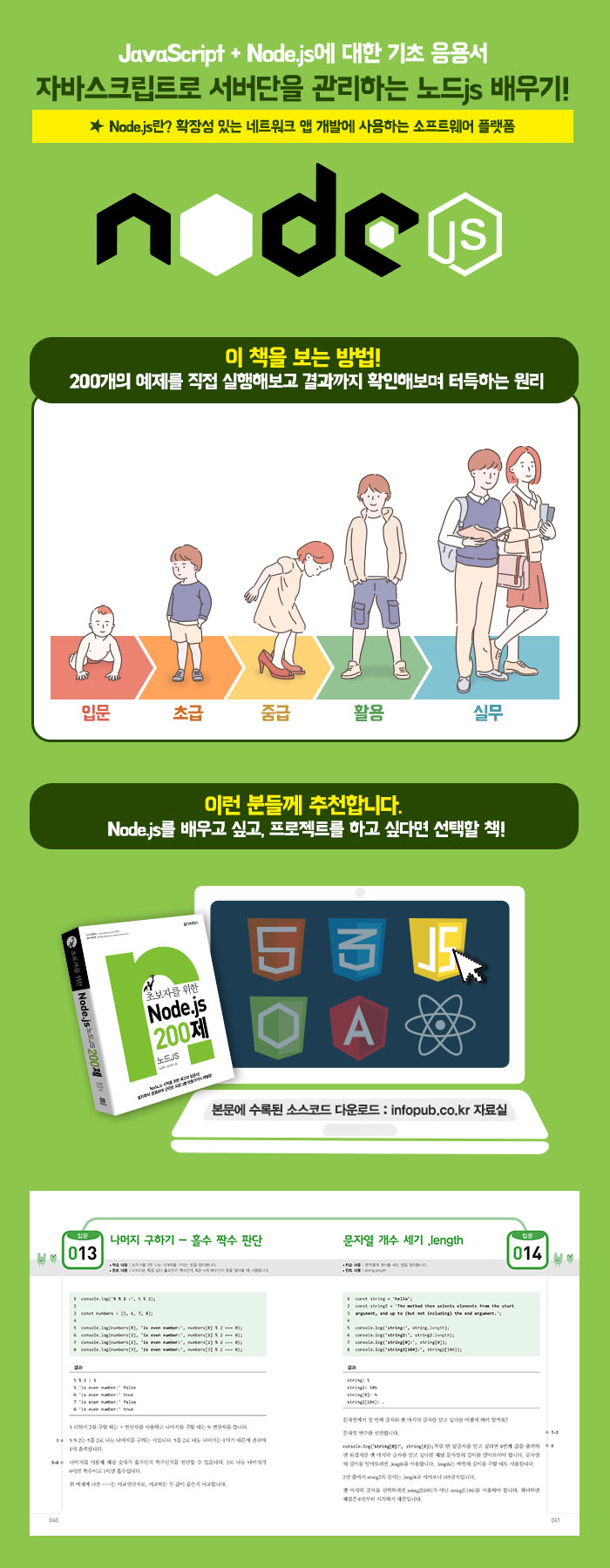 ÃÑ 5°³ ÆÄÆ® 200°³ÀÇ ¿¹Á¦·Î ±¸¼ºµÇ¾î ÀÖ´Â ÀÌ Ã¥Àº, ES6 ¹®¹ý°ú ÇÔ¼öÇü ÇÁ·Î±×·¡¹ÖÀ» ÇÑ ¹ø¿¡ ¹è¿ì±â À§ÇØ ¸¸µé¾îÁ³½À´Ï´Ù. À¥ ºê¶ó¿ìÀú¿¡¼¸¸ »ç¿ëÇÏ´ø ½ºÅ©¸³Æ® ¾ð¾î¿´´ø ÀÚ¹Ù½ºÅ©¸³Æ®¸¦ node.js¶ó´Â ¿£ÁøÀÌ ³ª¿À¸é¼ À¥ ºê¶ó¿ìÀú»Ó¸¸ ¾Æ´Ï¶ó ¼¹ö, ¾Û µî ¸¹Àº ºÐ¾ß¿¡¼ »ç¿ëÇϱ⠶§¹®¿¡ °³¹ßÇÏ´Â µ¥ Æí¸®ÇÔÀ» ÁÝ´Ï´Ù. ¶ÇÇÑ ³ëµå´Â npmÀ̶ó´Â ¶óÀ̺귯¸® °øÀ¯ ½Ã½ºÅÛÀÌ ÀÖ¾î¼ À¯¿ëÇÑ ¶óÀ̺귯¸®µéÀ» Ȱ¿ëÇÒ ¼ö ÀÖ½À´Ï´Ù. node.js¸¦ ¹è¿ì°í ½Í°í, ÇÁ·ÎÁ§Æ®µµ ÇØº¸°í ½ÍÀº ºÐµé¿¡°Ô ÀÌ Ã¥ÀÌ ES6¿Í ÇÔ¼öÇü ÇÁ·Î±×·¡¹ÖÀ¸·Î µé¾î°¥ ¼ö ÀÖ´Â ÁÁÀº ±âȸ°¡ µÉ °ÍÀÔ´Ï´Ù.