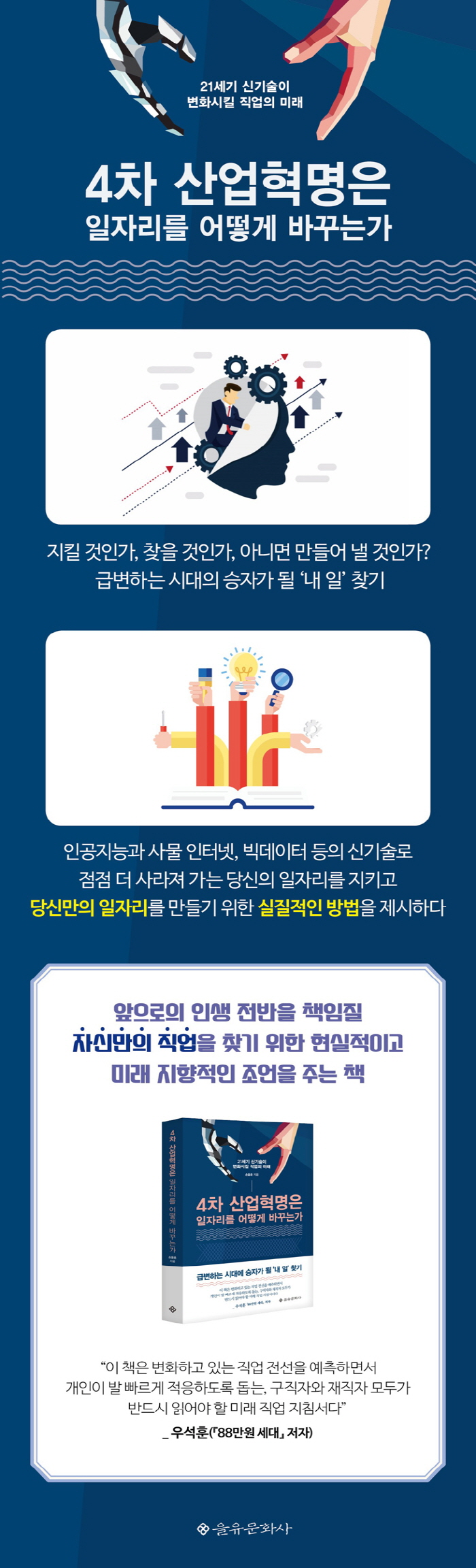 °í¿ë°ú ÀÏÀÚ¸®¿¡ ´ëÇÑ ²ÙÁØÇÑ °ü½É°ú ´Ù¾çÇÑ Á¤Ã¥ ºÐ¼® °æÇè¿¡¼ ¾òÀº ÅëÂû·ÂÀ» ¹ÙÅÁÀ¸·Î ÁýÇÊÇÑ ÀÌ Ã¥Àº 4Â÷ »ê¾÷Çõ¸í ½Ã´ëÀÇ Á÷¾÷°ú ÀÏÀÚ¸®ÀÇ ¹Ì·¡¸¦ ¿¹ÃøÇϰí, ±Þº¯ÇÏ´Â Á÷¾÷ ¼¼°è¿¡¼ »ì¾Æ³²±â À§ÇØ ±¹°¡¿Í °³ÀÎÀÌ ¾î¶»°Ô ´ëÀÀÇϰí ÁغñÇØ¾ß ÇÒ °ÍÀÎÁö, ±× ÇØ´äÀ» Á¦½ÃÇϰí ÀÖ´Ù.