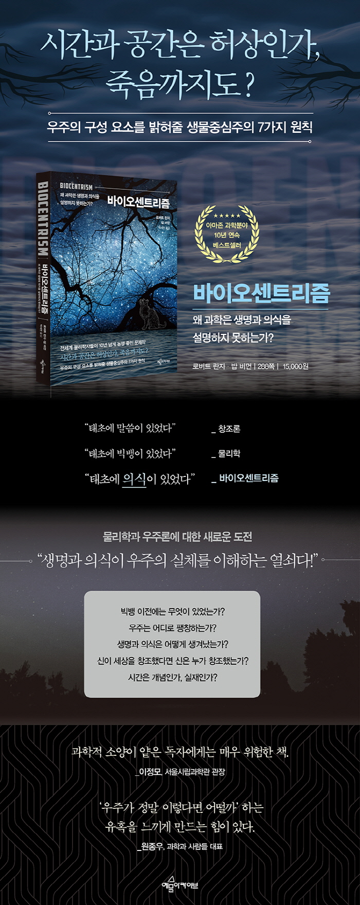Ãâ°£µÇÀÚ¸¶ÀÚ °úÇа踦 Ãæ°Ý¿¡ ºü¶ß¸®°í, ÀÌÈÄ 10³â µ¿¾È ¹°¸®ÇÐÀÚ¿Í »ý¹°ÇÐÀÚ µî Àü¼¼°è °úÇÐÀÚµéÀ» °©·ÐÀ»¹Ú ³íÀïÇÏ°Ô ¸¸µç ¹®Á¦ÀÛ ¡¶¹ÙÀÌ¿À¼¾Æ®¸®Áò(Biocentrism)¡·ÀÇ Çѱ¹¾îÆÇÀÌ ³ª¿Ô´Ù.