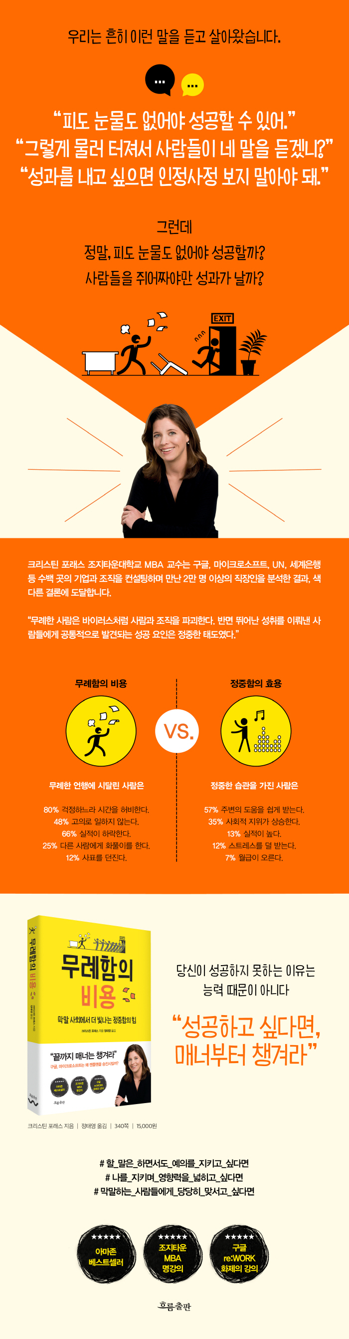 Á¶ÁöŸ¿î´ëÇб³ ¸Æµµ³Ê °æ¿µ´ëÇпø ±³¼ö ±¸±Û, UN, ¼¼°èÀºÇà, IMF, ÇÈ»ç, Á¦³ÙÅ×Å©, ÀͽºÇǵð¾Æ, ¹Ì±¹ ³ëµ¿ºÎ, À繫ºÎ, »ç¹ýºÎ, ±¹°¡ ¾ÈÀü±¹ÀÇ °æ¿µ ÄÁ¼³ÅÏÆ® ¿¤¸®Æ® ¿îµ¿¼±¼ö Ãâ½ÅÀ¸·Î ´ëÇÐÀ» °« Á¹¾÷ÇÑ Å©¸®½ºÆ¾ Æ÷·¡½º´Â ÀÚ½ÅÀÌ ²Þ²Ù´ø ±Û·Î¹ú ½ºÆ÷Ã÷ ºê·£µå¿¡ ÀÔ»çÇÑ´Ù. ±×·¯³ª °ð ȸ»çÀÇ ¹Î³¸À» º¸°Ô µÈ´Ù. ±×³à°¡ ±×Åä·Ï °¡°íÀÚ Çß´ø ȸ»ç´Â »ý»ê¼º Çâ»ó°ú ±äÀå°¨ Çü¼ºÀ̶ó´Â À̸§ ¾Æ·¡ ¸·¸»°ú ¹«·ÊÇÑ ÇൿÀÌ ÆÇÄ¡´Â °÷À̾ú´Ù. °á±¹ ÁöÃĹö¸° ±×³à´Â 1³â ¸¸¿¡ Á÷ÀåÀ» ±×¸¸µÐ´Ù. »çȸ»ýȰ¿¡¼ ¾´ ¸ÀÀ» º» ÈÄ ¡®¹«·ÊÇÔÀÌ Àΰ£°ú Á¶Á÷¿¡ ¹ÌÄ¡´Â ¿µÇ⡯¿¡ ´ëÇØ °ü½ÉÀ» °®°Ô µÈ´Ù. Áö±ÝÀº 20³âÀÌ ³Ñ°Ô ¹«·ÊÇÔÀÇ ºñ¿ë°ú Á¤ÁßÇÔÀÇ È¿¿ëÀ» Á¶Á÷ °ü¸® ¹× ¸®´õ½Ê Â÷¿ø¿¡¼ ¿¬±¸ÇÏ°í ¾Ë¸®´Â ÀÏÀ» Çϰí ÀÖ´Ù. ½ºÆ÷Ã÷ °æ¿µ ¹× ¸¶ÄÉÆÃ È¸»çÀÎ IMG¿¡¼ ÄÁ¼³ÅÏÆ®·Î ÀÏÇßÀ¸¸ç ÇϹöµå´ëÇб³, ¼´øÄ¶¸®Æ÷´Ï¾Æ´ëÇб³, ½ºÆäÀÎ ¿¡»çµ¥´ëÇб³¿¡¼ °æ¿µÀÚ °úÁ¤À» °¡¸£ÃÆ´Ù. ÇöÀç´Â Á¶ÁöŸ¿î´ëÇб³ MBA °úÁ¤À» ¸Ã°í ÀÖÀ¸¸ç ±¸±Û, ÇÈ»ç, UN, ¼¼°èÀºÇà µî ´Ù¾çÇÑ ±â¾÷°ú Á¶Á÷¿¡°Ô ÄÁ¼³ÆÃÀ» Çϰí ÀÖ´Ù. Àú¼·Î´Â ¡¶¹«·ÊÇÑ ÇൿÀÇ ´ë°¡(The Cost of Bad Behavior)¡·°¡ ÀÖ´Ù. <ÇϹöµå ºñÁî´Ï½º ¸®ºä><»çÀÌÄÝ·ÎÁö Åõµ¥ÀÌ> µî¿¡ Á¤±âÀûÀ¸·Î ±ÛÀ» ¾²°í ÀÖ´Ù.
