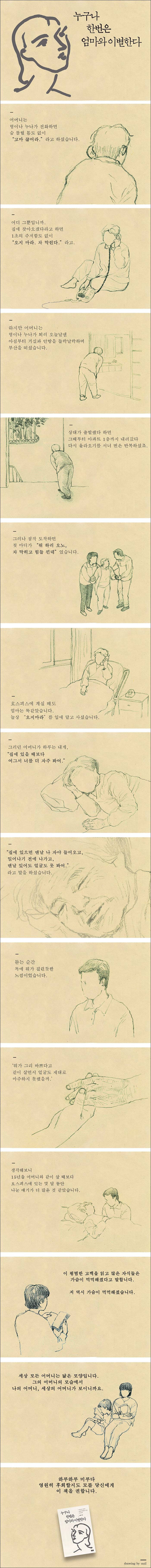 ÀÌ Ã¥Àº ¾î¸Ó´Ï¿Í À̺°ÇÑ ´ÙÀ½ µÚ´Ê°Ô ÈÄȸÇÏ¸ç ¾´ ÀÛǰÀÌ´Ù. µÎ ¹øÂ° ¾Ï¿¡ °É¸®½Å ¾î¸Ó´Ï¿ÍÀÇ À̺°Àº µ¹¾Æ°¡½Ã±â ¼ö°³¿ù ÀüºÎÅÍ ¿¹°íµÈ °ÍÀ̾úÁö¸¸, ±× À̺°Àº Ãæ°ÝÀÌ°í ½½ÇÄÀÌ°í ¾ÆÇÄÀ̾ú´Ù. ¿Ö À̺° ÈÄ¿¡¾ß ±ú´Ý°í ¹è¿ì´Â °ÍÀÌ ¸¹Àº °É±î. ±×·¯´Ù ¾î¸Ó´ÏÀÇ »ýÀü ¸ð½ÀÀ» Çϳª¾¿ Á¤¸®ÇÏ¸é¼ °¡½¿¿¡ ¸Û¿ïÁø ±×¸®¿òÀ» Ç®¾î³Â´Ù. ±Û·Î ¿Å°Ü ´Ù½Ã º¸°Ô µÈ ¾î¸Ó´Ï ¸ð½À ´öºÐ¿¡ Áöµ¶ÇÑ ±×¸®¿ò¿¡¼ ¹þ¾î³ª°Ô µÇ¾ú´Ù. ±×·¯³ª ¿äÁòµµ °¡²û ¾î¸Ó´Ï¸¦ ±×¸®¿öÇÑ´Ù.