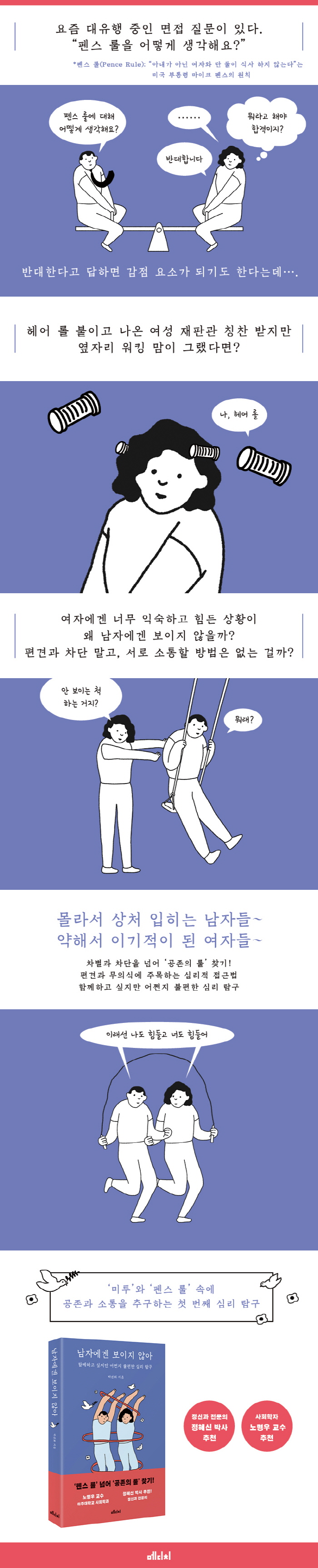 ¼¼»ó¿¡¼ ÀϾ´Â °¥µî°ú ºÒÈ´Â Áõ¿À¿¡¼ ºñ·ÔµÇ±âµµ ÇÏÁö¸¸, ¸ô¶ó¼ ¹®Á¦¸¦ º¸Áö ¸øÇØ ÀÏÀÌ ¾ôÈ÷´Â °æ¿ì°¡ ¸¹´Ù°í »ý°¢ÇÑ´Ù. °á±¹ ¡®³» ¹®Á¦¡¯·Î ÀνÄÇÏ°í ¼·Î ´Ù¸¥ °üÁ¡À» °øÀ¯ÇÏ´Ù º¸¸é ´õ ³ªÀº ¼¼»ó¿¡¼ »ì ¼ö ÀÖÀ¸¸®¶ó´Â Èñ¸ÁÀ» ǰ°í ÀÖ´Ù. ÀÌ Ã¥¿¡¼´Â ³²¼ºÀÌ ¿©¼ºÀ» Àß ¾ËÁö ¸øÇؼ ½±°Ô ÆÇ´ÜÇÏ´Â °æÇâ°ú ¿©¼º ½º½º·Î ³»¸éȵǾî¹ö¸° ÀÏ»óÀÇ ½À°üÀ» ¤¾îº»´Ù. ¼Ò¿Ü¿Í Æí°ß ¾ø´Â »çȸ °øµ¿Ã¼, °øÁ¸ÇÏ´Â »îÀ» À§ÇÑ ÇÑ °ÉÀ½ÀÌ´Ù.