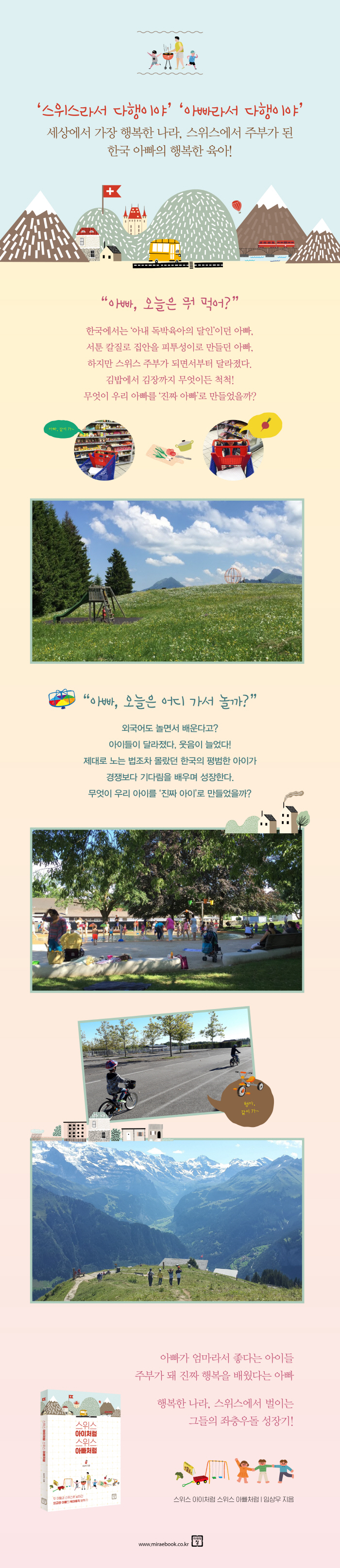 ÀÌ Ã¥Àº À°¾ÆÈÞÁ÷À» ¾²°í ½ºÀ§½º¿¡¼ µÎ ¾ÆµéÀ» Ű¿ì¸ç ÁֺηΠ¼ºÀåÇØ°¡´Â 2³â°£ÀÇ ±â·ÏÀÌ´Ù. ÀϹæÀûÀÎ Èñ»ýÀ» °¿ä¹Þ´Â ¾ÆÀÌ ¾ö¸¶¿¡ ´ëÇÑ ÁËÃ¥°¨¿¡¼ Ãâ¹ßÇÑ ¾ÆºüÀÇ À°¾ÆÈÞÁ÷±â´Â Àλý¿¡¼ °¡Àå Ä¡¿Çϸ鼵µ °í±ÍÇÑ ½Ã°£ÀÌ µÇ¾ú´Ù. Ä¿¸®¾î¿¡¸¸ ¿ÁßÇÏ´À¶ó µ¹º¸Áö ¸øÇß´ø ¾ÆÀ̵é°ú ¹ÐÂøÇØ¼ ½Ã°£À» º¸³½ ±×´Â ½ºÀ§½ºÀÇ À°¾Æ¹ý°ú »ì¸² ³ëÇϿ츦 °øÀ¯ÇϰíÀÚ ÀÌ Ã¥À» ½è´Ù. ±×´Â ´ëÇѹα¹ÀÇ ºÎ¸ð°¡ ÇູÇÏ°Ô À°¾ÆÇϰí, ¾ÆÀ̵éÀº ¸¶À½²¯ ¶Ù¾î³î ¼ö ÀÖ´Â ¼¼»óÀ» ²Þ²Û´Ù.