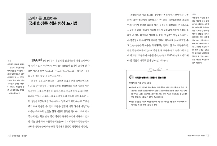 ÀÌ¿¡ ´ëÇÑ ±Ùº»ÀûÀÎ ÇØ°á¹æ¾ÈÀº µ¶ÀÚµéÀÌ ½º½º·Î ÈÀåǰÀÇ Ç°ÁúÀ» ÆÇ´ÜÇÒ ¼ö ÀÖ´Â ±âÁØÀ» °®´Â °ÍÀ̶ó°í ÆÇ´ÜÇß´Ù. ÀÌ·± ±âÁØÀ» Á¦½ÃÇÒ ¼ö Àִ åÀ» ã´ø Áß 2,000¿© °³ÀÇ ÈÀåǰ ¼ººÐ¿¡ ´ëÇÑ Ä£ÀýÇÑ ¼³¸í°ú ÇǺÎÀûÇÕ¼º Æò°¡°¡ Æ÷ÇԵǾî ÀÖ´Â ¡º±ñ±ñÇÑ ÈÀåǰ »ç¿ë¼³¸í¼¡»¸¦ ¸¸³µ°í, ÀÏÇÏ¸é¼ Æ´Æ´ÀÌ ¹ø¿ªÇØ ¼¼»ó¿¡ ³»³õ¾Ò´Ù.