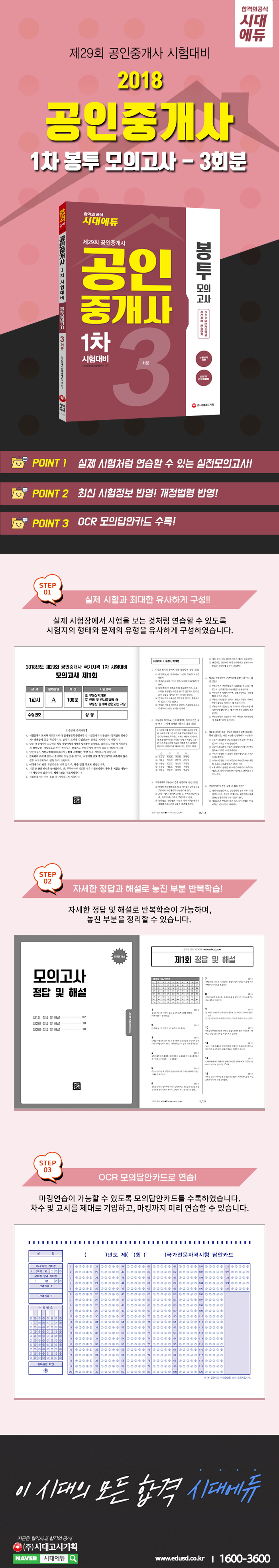 °øÀÎÁß°³»ç ½ÃÇèÀº 1Â÷½ÃÇè 100ºÐ, 2Â÷½ÃÇè 150ºÐ(1±³½Ã 100ºÐ, 2±³½Ã 50ºÐ)À¸·Î ÁøÇàµÇ°í, °ú¸ñ´ç 40¹®Á¦·Î ÀÌ·ç¾îÁ® Àֱ⠶§¹®¿¡ ½Ã°£ºÐ¹è¸¦ Àß ÇÏ¿©¾ß ÇÑ´Ù. ƯÈ÷ ´ä¾ÈÄ«µå¿¡ ¸¶Å·¿¡ ÇҾֵǴ ½Ã°£±îÁö °í·ÁÇÏ¿© ½ÃÇè¹®Á¦¸¦ Ǫ´Â ¿¬½ÀÀÌ ÇÊ¿äÇÏ´Ù. ÀÌ¿¡ ¼öÇè»ýÀÌ ´ëºñÇÒ ¼ö ÀÖµµ·Ï °øÀÎÁß°³»ç ºÀÅõ¸ðÀǰí»ç¸¦ ±¸¼ºÇÏ¿´´Ù. ÃÑ 3ȸºÐÀÇ ¸ðÀǰí»ç·Î ÀÌ·ç¾îÁ® ÀÖÀ¸¸ç, OCR´ä¾ÈÄ«µå°¡ ¼ö·ÏµÇ¾î ½ÃÇè ´ëºñ ÃÖÁ¾ ¸¶¹«¸®°¡ °¡´ÉÇÏ´Ù.