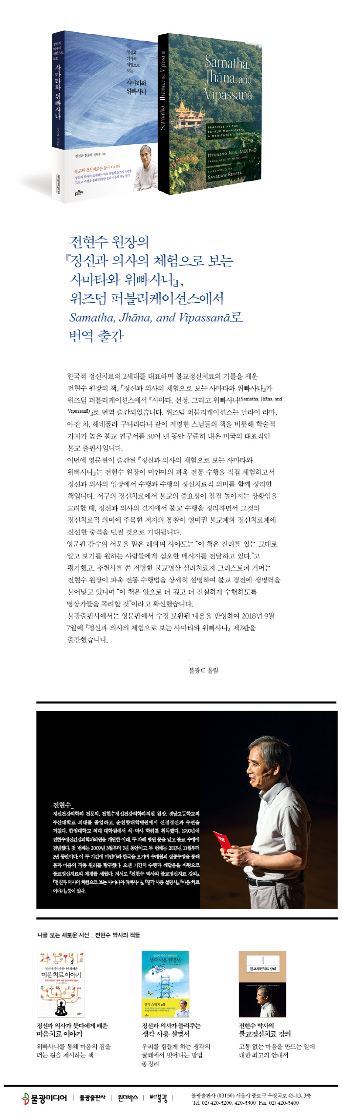 ÇöÀç´Â ±×µ¿¾ÈÀÇ ÅëÂûÀ» ¹ÙÅÁÀ¸·Î ¡®ºÒ±³½É¸®Ä¡·á¡¯ÀÇ Ã¼°è¸¦ ¼¼¿ì´Â ÀÛ¾÷À» Çϰí ÀÖ´Ù. Àú¼·Î ¡ºÁ¤½Å°ú Àǻ簡 µé·ÁÁÖ´Â »ý°¢»ç¿ë ¼³¸í¼¡», ¡ºÁ¤½Å°ú Àǻ簡 º×´Ù¿¡°Ô ¹è¿î ¸¶À½ Ä¡·á À̾߱⡻, ¡º¿ï°í ½ÍÀ» ¶§ ¿ï¾î¶ó¡», ¡º³ëµ¿ÀÇ °¡Ä¡, ºÒ±³¿¡ ¹¯´Â´Ù¡»°¡ ÀÖ°í, ¹ø¿ª¼·Î ¡ºº×´ÙÀÇ ½É¸®ÇС»(°ø¿ª)ÀÌ ÀÖ´Ù.