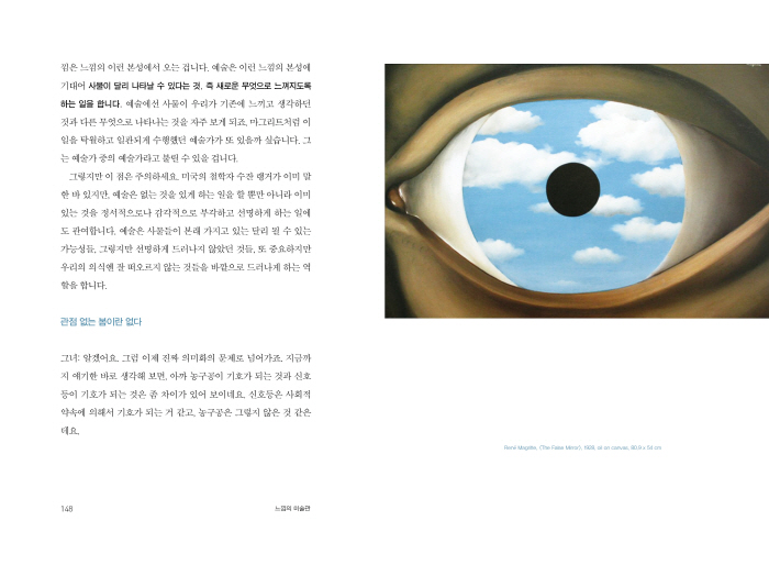 ÀÌ Ã¥Àº Çö´ë¹Ì¼ú¿¡ Á¢±ÙÇÏ´Â µ¥ ¿©·¯ ÀÌÀ¯·Î ¾î·Á¿òÀ» °Þ´Â »ç¶÷µéÀ» À§ÇØ Â¡°Ë´Ù¸®¸¦ ³õÀ¸·Á´Â ¸ñÀû¿¡¼ ¾²¿´´Ù. ±âÀÌÇϰí Ȳ´çÇϱâ±îÁö ÇÑ Çö´ë¹Ì¼ú ÀÛǰ ¾Õ¿¡ ³»´øÁ®Áø »ç¶÷µéÀÌ ¾î¶»°Ô ÀÚ½ÅÀÇ ¡®´À³¦¡¯À» µû¶ó°¡¸é¼ ÀÛǰÀÌ ÁÖ´Â ¸ñ¼Ò¸®¸¦ ÀÌÇØÇÒ ¼ö ÀÖ´ÂÁö Ä£ÀýÈ÷ ¼³¸íÇϰíÀÚ Çß´Ù. ¹ÌÇÐÀÚÀÌÀÚ ¹Ì¼úºñÆò°¡ÀÎ ÀúÀÚ´Â Á¤´äÀ» ã´Â ¿¹¼ú °¨»ó¹ý¿¡¼ ¹þ¾î³ª Àڱ⸸ÀÇ ´À³¦¿¡ ±Í¸¦ ±â¿ïÀÌ´Â ¿¹¼ú °¨»ó¹ýÀ» ±ÇÇÑ´Ù. ´À³¦Àº ¿ì¸®¸¦ Çö´ë¹Ì¼ú¿¡ ´Ù°¡°¥ ¼ö ÀÖµµ·Ï ÇØÁÖ´Â °¡Àå ÁÁÀº Åë·ÎÀ̱⠶§¹®ÀÌ´Ù.