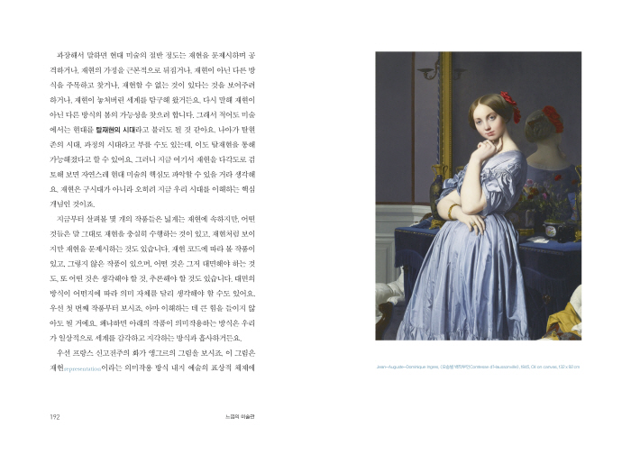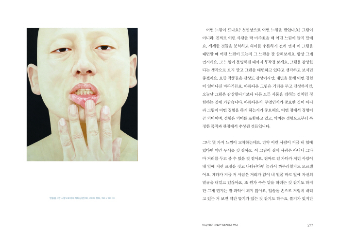 ÀÌ Ã¥Àº Çö´ë¹Ì¼ú ÃʽÉÀÚ°¡ ¹Ì¼ú°ü¿¡ ¿Ô´Ù°¡ ÀúÀÚ¸¦ ¸¸³ª°í, µÎ »ç¶÷ÀÌ ¹®´ä½Ä ´ëȸ¦ ÅëÇØ Çö´ë¹Ì¼úÀÇ ¼¼°è·Î Â÷±ÙÂ÷±Ù µé¾î°¡´Â ³»¿ëÀ» ´ã°í ÀÖ´Ù. ¿¹¼úÀÇ º»¼ºÀÌ ¹«¾ùÀÎÁö, ¿¹¼úÀÛǰÀÌ ¾î¶»°Ô »õ·Î¿î ´À³¦°ú Àǹ̸¦ ¸¸µé¾î³»´ÂÁö, ±×¸®°í ´Ù¾çÇÑ ¿¹¼úÀÛǰµé¿¡¼ ÀÛµ¿ÇÏ´Â ¡®´À³¦ÀÇ Äڵ塯¸¦ ¸ÂÃß±â À§ÇØ ¹«¾ùÀ» ÇØ¾ß ÇÏ´ÂÁö¿¡ °üÇÑ ¿³× ¹øÀÇ ¿¹¼ú¼ö¾÷ÀÌ À̾îÁø´Ù. ÀúÀÚ´Â ´ëÇ¥ÀûÀÎ Çö´ë¹Ì¼ú ÀÛǰµéÀ» Á÷Á¢ º¸¿©ÁÖ¸ç, ¡®ÀçÇöÇϱ⡯ ¡®´ë¸éÇϱ⡯ ¡®¹ÐÂøÇϱ⡯ ¡®Ãß»óÇϱ⡯ µî ¿©·¯ °¡Áö ´À³¦ÀÇ ±æÀ» ÅëÇØ ¿ì¸® ½Ã´ë ¿¹¼úÀÛǰÀ» Á¦´ë·Î °¨»óÇÏ´Â ¹æ¹ýÀ» Á¶¸ñÁ¶¸ñ ¤¾îÁØ´Ù.