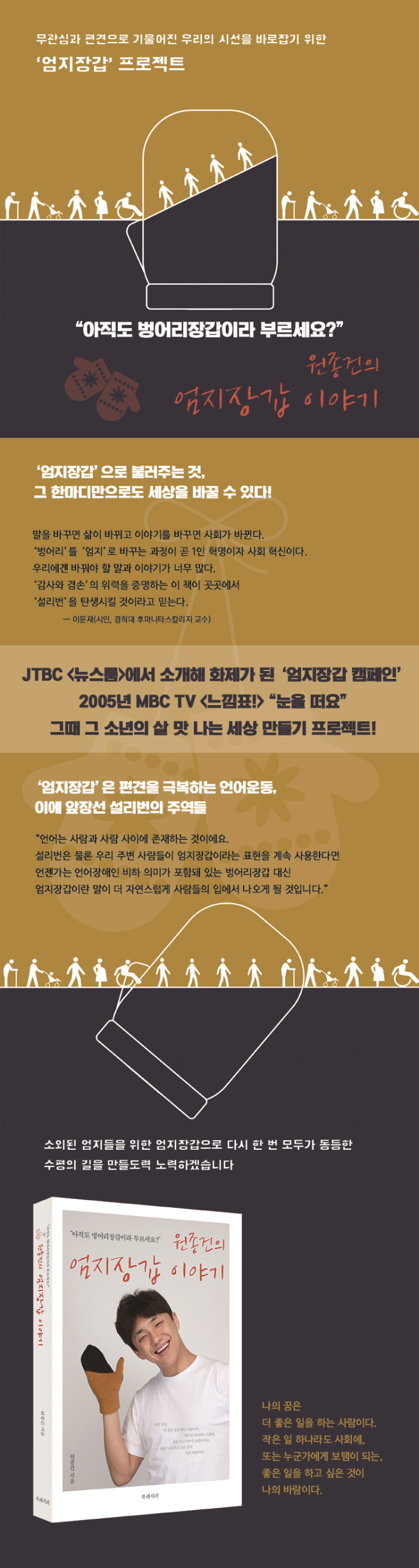 ½Ã°¢Àå¾Ö ¹× û°¢Àå¾Ö¸¦ °¡Áø ¾î¸Ó´Ï¿Í ´ÜµÑÀÌ »ì¾Æ¿À´ø Áß 2005³â MBC ÇÁ·Î±×·¥ <´À³¦Ç¥!> ¡°´«À» ¶°¿ä¡± ÆíÀ» ÅëÇØ °¡Á·ÀÇ À̾߱Ⱑ ¼¼»ó¿¡ ¾Ë·ÁÁ³´Ù. ±×¸®°í ±×¶§ ¸¹Àº ½ÃûÀÚÀÇ ´«¹°À» È긮°Ô ÇÑ ¼Ò³âÀº ÁÖº¯ÀÇ ¿©·¯ µµ¿ò°ú °Ý·Á¿¡ ÈûÀÔ¾î °Ç½ÇÇÑ Ã»³âÀ¸·Î ¼ºÀåÇÏ¿´´Ù. ´ëÇп¡ ÀÔÇÐÇÏ¿©¼± ºÀ»çȰµ¿¿¡ Àû±Ø ³ª¼¹°í Á¹¾÷ ÈÄ ¾î´Àµ¡ ¾î¸Ó´Ï¸¦ ºÎ¾çÇÏ´Â »çȸ Ãʳâ»ýÀÌ µÇ¾ú´Ù. ÇöÀç À̺£ÀÌÄÚ¸®¾Æ¿¡¼ »çȸ°øÇå ÀÏÀ» ÇÏ¸ç ¿ì¸® ÁÖº¯ÀÇ ¼Ò¿ÜµÈ ÀÌ¿ô°ú µµ¿òÀÌ ÇÊ¿äÇÑ °÷¿¡ »ç¶û°ú ±àÁ¤ÀÇ ¿¡³ÊÁö¸¦ ½ñ¾Æ³»°í ÀÖ´Ù. ¾ð¾îÀå¾ÖÀÎÀ» ³·Ãç ºÎ¸£´Â Ç¥ÇöÀÎ º¡¾î¸®Àå°©À̶ó´Â ¸» ´ë½Å ¡®¾öÁöÀå°©¡¯À¸·Î ºÎ¸£ÀÚ´Â ÇÁ·ÎÁ§Æ®¸¦ ÁøÇàÇÏ¿´À¸¸ç, û°¢¾ð¾îÀå¾ÖÀΰú ±× °¡Á·µéÀ» À§ÇÑ À̾îÇÁ·ÎÁ§Æ®µµ Áغñ ÁßÀÌ´Ù. ±×·¯´Â °¡¿îµ¥ ¡®´õ ÁÁÀº ÀÏ¡¯À» Çϱâ À§ÇØ ¸ÅÀϸÅÀÏ ³ë·ÂÇϸç Áñ°Ì°Ô »ì¾Æ°¡°í ÀÖ´Ù.
