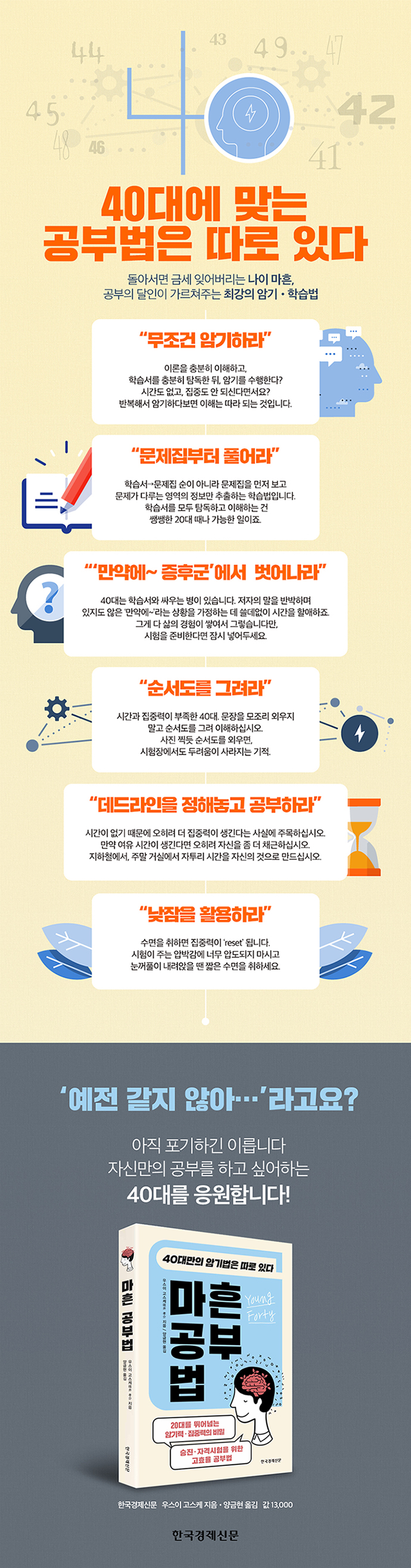 ¿©±â¼ ÇÑ °¡Áö¸¦ Á¦¾ÈÇϰíÀÚ ÇÑ´Ù. ¡®¾î´À Á¤µµ ³ªÀ̸¦ ¸ÔÀ¸¸é Àå½Ã°£ °øºÎ´Â Èû¿¡ ºÎÄ¡´Ù¡¯¶ó´Â Çö½ÇÀ» ¸ÕÀú ¹Þ¾ÆµéÀÌÀÚ´Â °ÍÀÌ´Ù. ±×·± ´ÙÀ½ ¹ß»óÀ» ÀüȯÇÏ¸é µÈ´Ù. ½±°Ô ÇÇ·ÎÇØÁö´Ï±î ¡®ÇÇ·ÎÇØÁö±â Àü¿¡ Ã¥»óÀ» ¶°³´Ù¡¯ ¶ó´Â ¿øÄ¢À¸·Î °øºÎ¹æ¹ý¿¡ º¯È¸¦ ÁÖ´Â °ÍÀÌ´Ù.