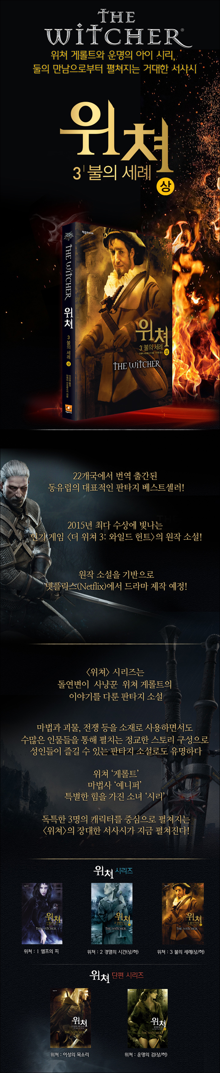 ¼Ò¼³ <À§ÃÄ: 3 ºÒÀÇ ¼¼·Ê>´Â ¼¼°èÀûÀ¸·Î Àα⸦ ²ø¾ú´ø °ÔÀÓ <´õ À§ÃÄ 3: ¿ÍÀϵå Ç寮>ÀÇ ¿øÀÛ ¼Ò¼³·Î <À§ÃÄ> ½Ã¸®ÁîÀÇ ¼¼ ¹øÂ° À̾߱⸦ ´ã°í ÀÖ´Ù. ¸¶¹ý°ú ±«¹°, ÀüÀïÀ» ¼ÒÀç·Î »ç¿ëÇÏ´Â ÆÇŸÁö ¼Ò¼³ÀÌÁö¸¸ ¹æ´ëÇÑ ¼¼°è°ü°ú ¼ö ¸¹Àº µîÀåÀι°, ±×¸®°í Á¤±³ÇÑ ½ºÅ丮 ±¸¼ºÀ» ÅëÇØ ¾ÆÀ̵éÀÌ ¾Æ´Ñ ¼ºÀεéÀÌ Áñ±æ ¼ö ÀÖ´Â ÆÇŸÁö ¼Ò¼³·Î À¯¸íÇÑ ÀÛǰÀ̱⵵ ÇÏ´Ù.