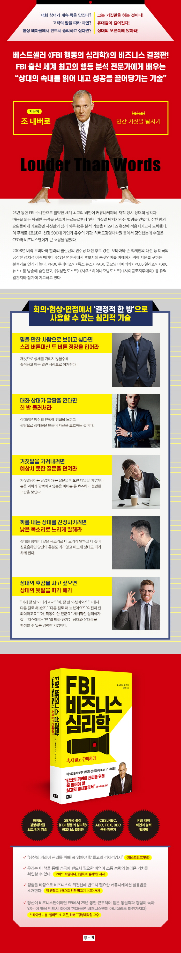 Á¶ ³»¹ö·Î°¡ 25³â°£ÀÇ ÇöÀå °æÇèÀ» ¹ÙÅÁÀ¸·Î 2008³â Ãâ°£ÇÑ ¡¶FBI ÇൿÀÇ ½É¸®ÇС·Àº Çѱ¹À» ºñ·ÔÇØ ¹Ì±¹, ¿µ±¹, ÀϺ»¿¡¼ µ¿½Ã¿¡ º£½ºÆ®¼¿·¯¿¡ ¿Ã¶úÀ¸¸ç, ÇöÀç±îÁö Àü ¼¼°è 29°³±¹¿¡¼ Ãâ°£µÇ¾ú´Ù. ¡¶FBI ÇൿÀÇ ½É¸®ÇС·ÀÌ ºñ¾ð¾îÀû ´É·Â¿¡ ´ëÇÑ Àü¹ÝÀûÀÎ ºÐ¼®À» ´ã¾Ò´Ù¸é, ¡¶FBI ºñÁî´Ï½º ½É¸®ÇС·Àº ±× ¿øÄ¢µéÀ» ½ÇÁ¦ ºñÁî´Ï½º ÇöÀå¿¡ Àû¿ëÇÏ¿© ¡®¾î¶»°Ô »ó´ëÀÇ ¸¶À½À» ÀÐ°í ³ª¸¦ ¾îÇÊÇÒ °ÍÀΰ¡¡¯¶ó´Â ½É¸® ÇØµ¶ ¹× Ȱ¿ë ¹æ¹ýÀ» Áý´ë¼ºÇÑ Ã¥ÀÌ´Ù. ¡¶¿ù½ºÆ®¸®Æ®Àú³Î¡·Àº ÀÌ Ã¥ÀÌ Ãâ°£µÇÀÚ¸¶ÀÚ ¡°´ç½ÅÀÇ Ä¿¸®¾î °ü¸®¸¦ À§ÇØ ²À Àоî¾ß ÇÒ ÃÖ°íÀÇ °æÁ¦°æ¿µ¼ 6±Ç¡± Áß ÇÑ ±ÇÀ¸·Î ¼±Á¤Çß´Ù.
