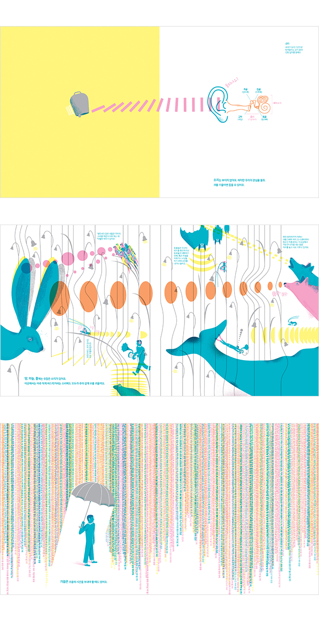 ¹«¾ùº¸´Ù ¿ì¸® ´«¿¡ º¸ÀÌÁö ¾Ê´Â ¼Ò¸®µéÀ» ¼¼·ÃµÇ°í ´Ü¼øÇÑ ÀÎÆ÷±×·¡ÇȰú È·ÁÇÑ À̹ÌÁöµé, ´ë´ãÇÏ°í µ¶Æ¯ÇÑ ±¸¼ºÀ¸·Î Ç¥ÇöÇÑ Á¡Àº ÀÌ Ã¥À» ´õ¿í Ưº°ÇÏ°Ô ÇÕ´Ï´Ù. ÀÌ·¯ÇÑ ÀÛ°¡µéÀÇ ³î¶ó¿î »ó»ó·ÂÀº 4»ö º°»ö¸¸À¸·Î Ư¼öÇÏ°Ô ÀμâÇÏ¿© Ã¥ÀåÀ» ³Ñ±æ ¶§¸¶´Ù ÆîÃÄÁö´Â È·ÁÇÏ°í ¾Æ¸§´Ù¿î »ö±ò±îÁö ¾î¿ì·¯Á® Ã¥À» º¸´Â ÀÌ¿¡°Ô ³î¶ó¿ò°ú °¨ÅºÀ» ¼±»çÇÕ´Ï´Ù.
