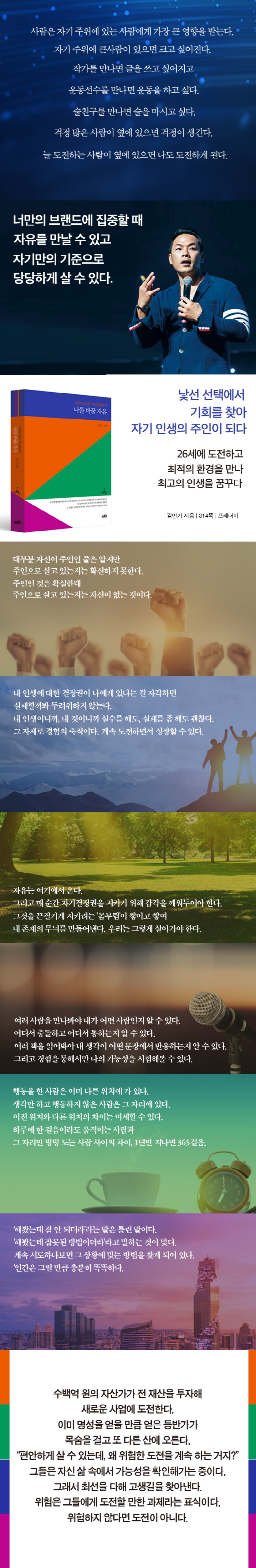 ¿ç·Î, ¼ÒÈ®Çà¿¡ ÀÌ¾î ¡®³ª³ª·£µå¡¯¶ó´Â ¸»ÀÌ »ý°Ü³¯ Á¤µµ·Î °³ÀÎÀÇ »î°ú ÇູÀÌ Áß¿äÇÏ°Ô ¿©°ÜÁö´Â ½Ã´ë´Ù. ŸÀÎÀÇ ½Ã¼±º¸´Ù´Â Àڱ⸸ÀÇ ±âÁØÀ¸·Î ¼¼»óÀ» »ç´Â ´ç´çÇÔÀÌ ÁÖ¸ñ¹Þ°í ÀÖ´Ù. ÇÏÁö¸¸ ±×¸¸Å ¾î·Æ°í Èûµç ½Ã´ë¶ó´Â ¹ÝÁõÀ̱⵵ ÇÏ´Ù. ÀÌ Ã¥Àº ¾î·Æ°í Èûµç ½Ã´ë¸¦ »ç´Â ¸ðµç ÀÌ¿¡°Ô »îÀ» º¯È½Ãų ¼ö ÀÖ´Â ÀÚÀ¯´Â ³²ÀÌ ÁÖ´Â °ÍÀÌ ¾Æ´Ï¶ó ÀÚ½ÅÀÌ °¡Áö°í ÀÖ´Ù´Â »ç½ÇÀ» »ó±â½ÃŲ´Ù. ÀúÀÚ´Â ¼¼»óÀÇ º¯È¼Óµµ´Â Áö±Ýº¸´Ù ´õ »¡¶óÁú °ÍÀ̰í Áö±Ý±îÁöÀÇ ¼º°ø¹æ½ÄÀº ´õ ÀÌ»ó ÅëÇÏÁö ¾ÊÀ» °ÍÀ̶ó°í È®½ÅÇÑ´Ù. ¿ì¸®°¡ º¯È¸¦ ¹Þ¾ÆµéÀ̱â À§Çؼ´Â °¡´É¼ºÀ» ã¾Æ ½º½º·Î ¹ßÇöÇÒ ¼ö ÀÖ´Ù´Â ¹ÏÀ½ÀÌ ÇÊ¿äÇÏ¸ç ±× °á°ú Á» ´õ ¸¸Á·½º·¯¿î »îÀ» »ì ¼ö ÀÖ´Ù°í ¸»ÇÑ´Ù. ÀÌ Ã¥Àº ÀÚ½ÅÀÌ ¿øÇÏ´Â »ç¶÷À¸·Î º¯ÈÇÏ·Á¸é, ¿øÇÏ´Â »îÀ» »ì°í ½Í´Ù¸é ±×°ÍÀ» °¡´ÉÇÏ°Ô Çϴ ȯ°æ ¼Ó¿¡ ÀÖ¾î¾ß Çϸç, Áö±Ý ÀÖ´Â ±× ÀÚ¸®¿¡¼ ±âȸ°¡ º¸ÀÌÁö ¾Ê´Â´Ù¸é Áö±Ý±îÁö ÇÏÁö ¾Ê´ø ¼±ÅÃÀ» ÇØ¾ß ÇÑ´Ù°í À̲ø°í ÀÖ´Ù.