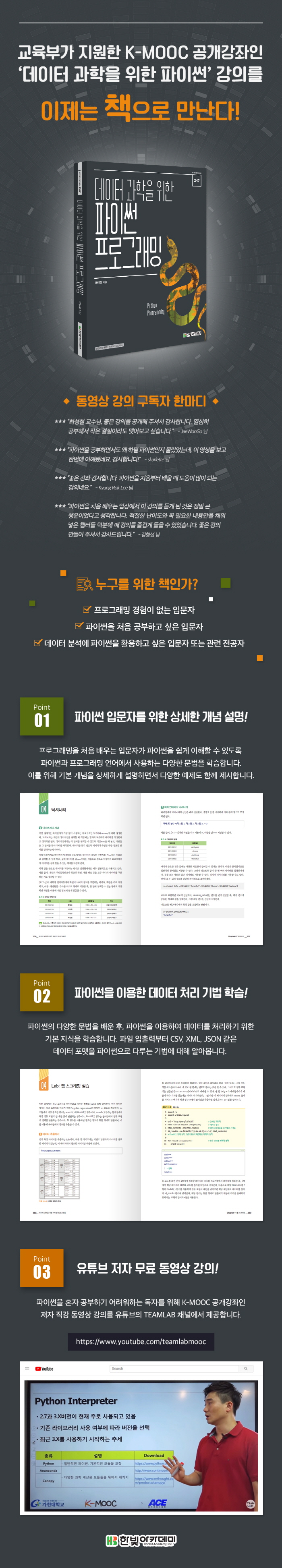 ¡¶µ¥ÀÌÅÍ °úÇÐÀ» À§ÇÑ ÆÄÀ̽ã ÇÁ·Î±×·¡¹Ö¡·Àº K-MOOC °ø°³°ÁÂÀÎ ÃÖ¼ºÃ¶ ±³¼öÀÇ ¡®µ¥ÀÌÅÍ °úÇÐÀ» À§ÇÑ ÆÄÀ̽㡯 °ÀǸ¦ ±â¹ÝÀ¸·Î ÁýÇÊÇÏ¿´½À´Ï´Ù.
