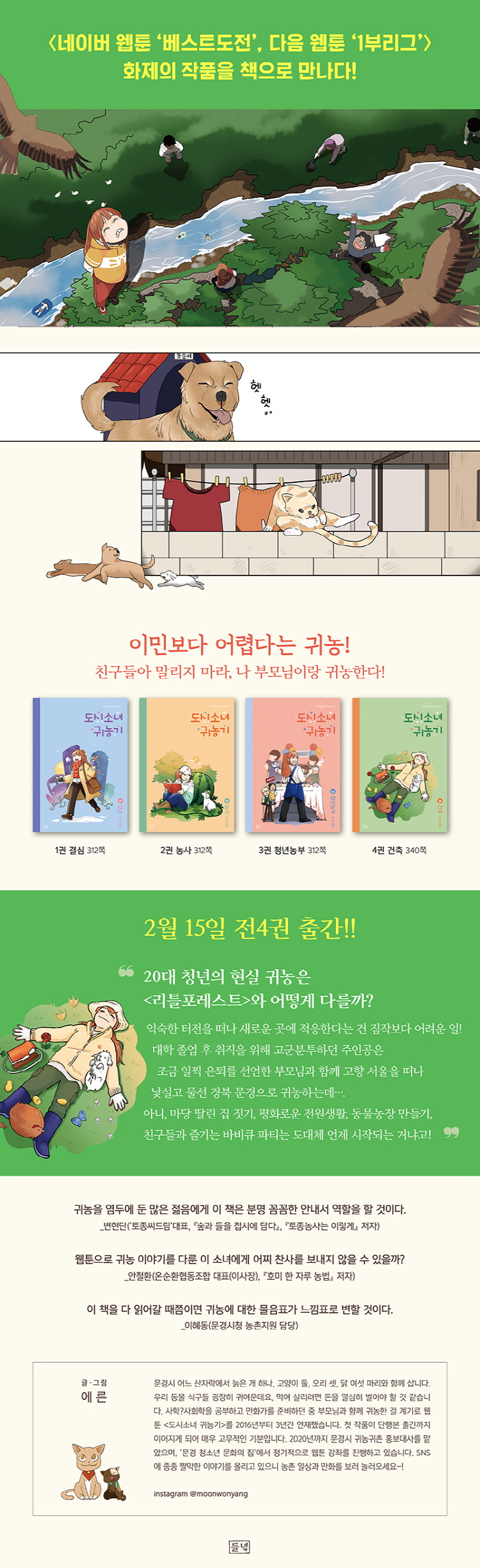 ¹®°æ½Ã ¾î´À »êÀÚ¶ô¿¡¼ ´ÄÀº °³ Çϳª, °í¾çÀÌ µÑ, ¿À¸® ¼Â, ´ß ¿©¼¸ ¸¶¸®¿Í ÇÔ²² »ð´Ï´Ù. ¿ì¸® µ¿¹° ½Ä±¸µé ±²ÀåÈ÷ ±Í¿©¿îµ¥¿ä, ¸Ô¿© »ì¸®·Á¸é µ·À» ¿½ÉÈ÷ ¹ú¾î¾ß ÇÒ °Í °°½À´Ï´Ù. »çÇС¤»çȸÇÐÀ» °øºÎÇÏ°í ¸¸È°¡¸¦ ÁغñÇÏ´ø Áß ºÎ¸ð´Ô°ú ÇÔ²² ±Í³óÇÑ °É °è±â·Î À¥Å÷ <µµ½Ã¼Ò³à ±Í³ó±â>¸¦ 2016³âºÎÅÍ 3³â°£ ¿¬ÀçÇß½À´Ï´Ù. ù ÀÛǰÀÌ ´ÜÇົ Ãâ°£±îÁö À̾îÁö°Ô µÇ¾î ¸Å¿ì °í¹«ÀûÀÎ ±âºÐÀÔ´Ï´Ù. 2020³â±îÁö ¹®°æ½Ã ±Í³ó±ÍÃÌ È«º¸´ë»ç¸¦ ¸Ã¾ÒÀ¸¸ç, ¡®¹®°æ û¼Ò³â ¹®ÈÀÇ Áý¡¯¿¡¼ Á¤±âÀûÀ¸·Î À¥Å÷ °Á¸¦ ÁøÇàÇϰí ÀÖ½À´Ï´Ù. SNS¿¡ Á¾Á¾ ©¸·ÇÑ À̾߱⸦ ¿Ã¸®°í ÀÖÀ¸´Ï ³óÃÌ ÀÏ»ó°ú ¸¸È¸¦ º¸·¯ ³î·¯¿À¼¼¿ä! (ÀνºÅ¸±×·¥ @moonwonyang)