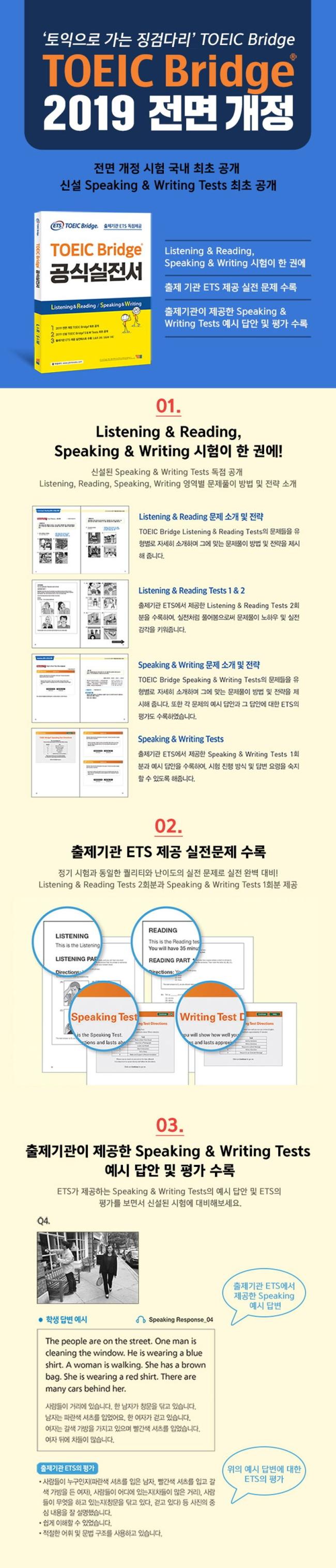 º» Ã¥¿¡¼´Â ETS°¡ 2019³â °³Á¤ÇÒ TOEIC Bridge ½ÃÇèÀ» ±¹³» ÃÖÃÊ °ø°³ÇÕ´Ï´Ù. ±×¿¡ ¸ÂÃç öÀúÈ÷ ºÐ¼®ÇÑ ÆÄÆ®º° Àü·«°ú ¹®Á¦Ç®ÀÌ ¹æ¹ýÀ» ¼Ò°³ÇÏ¿´À¸¸ç, ½ÇÀü¿¡ ´ëºñÇÒ ¼ö ÀÖµµ·Ï Listening & Reading Tests ½ÇÀüÅ×½ºÆ® 2ȸºÐ°ú Speaking & Writing Tests ½ÇÀüÅ×½ºÆ® 1ȸºÐÀ» ¼ö·ÏÇÏ¿´½À´Ï´Ù.