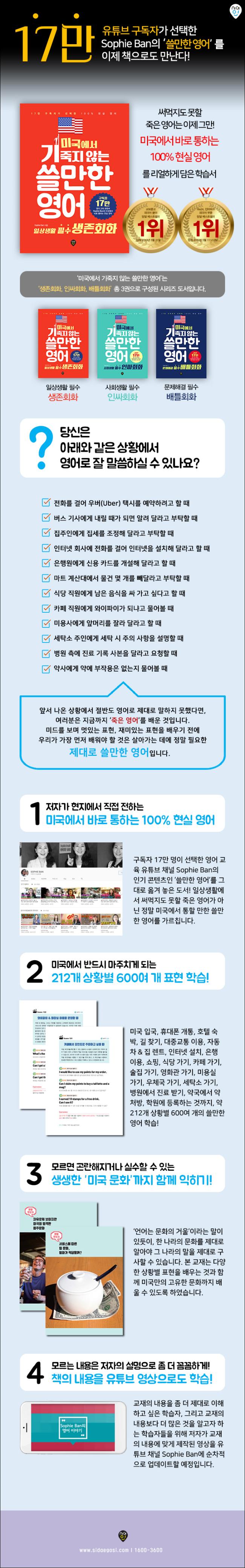 ½Ã¸®Áî 1±Ç¿¡ ÇØ´çÇÏ´Â ¡®ÀÏ»ó»ýȰ Çʼö »ýÁ¸È¸È¡¯ÀÇ °æ¿ì, ¹Ì±¹ ÀÔ±¹¿¡¼ºÎÅÍ È£ÅÚ ¼÷¹Ú, ÈÞ´ëÆù °³Åë, ÀºÇà¿¡¼ ½Å¿ë Ä«µå °³¼³ ¹× °¢Á¾ ÆíÀÇ ½Ã¼³(¼¼Å¹¼Ò, ¼ö¼±¼¥, ¹Ì¿ë½Ç)À̳ª ¿©°¡/¿À¶ô ½Ã¼³(Ä«Æä, ¼úÁý, ¿µÈ°ü) µîÀ» ÀÌ¿ëÇÏ´Â µ¥¿¡ ÇÊ¿äÇÑ ´Ù¾çÇÑ ÀÏ»ó»ýȰ ¼Ó 212°³ »óȲº°·Î ¾à 600¿© °³ÀÇ ¿µ¾î Ç¥ÇöÀ» ÀÍÈ÷°í ½á¸ÔÀ» ¼ö ÀÖµµ·Ï ±¸¼ºÇÏ¿´´Ù.