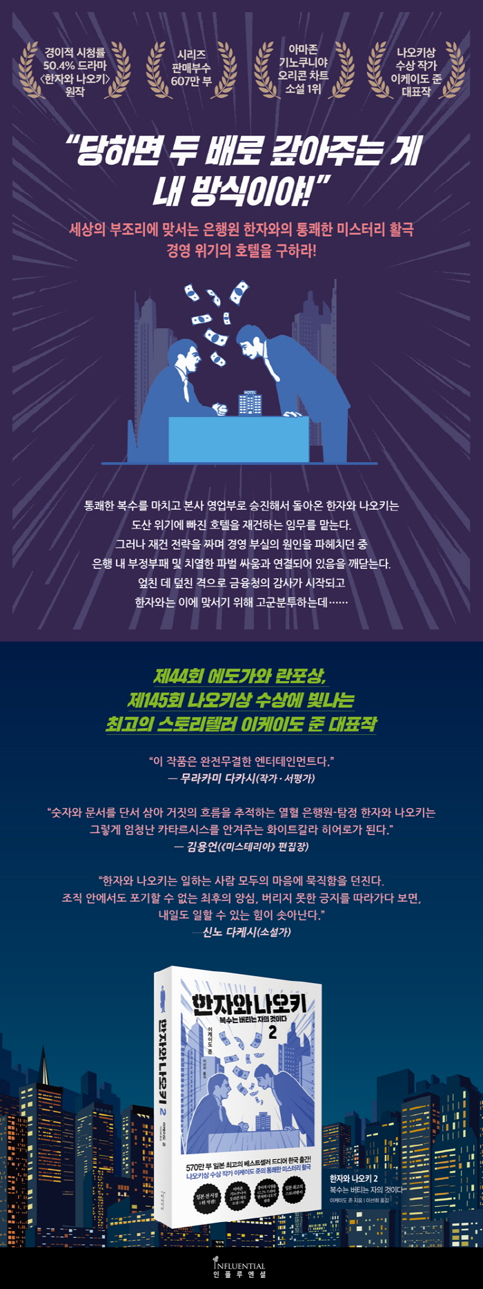 ÀºÇà°ú ±â¾÷À» ¹«´ë·Î ¹ú¾îÁö´Â ¹Ì½ºÅ͸®¿¡¼ ½ÃÀÛÇØ, Çö½ÇÀ» »ì¾Æ°¡´Â ¸ðµç Ä¡¿ÇÑ ¡®Àΰ£¡¯¿¡ °ü½ÉÀ» °¡Áö¸ç ±×µéÀ» Á¸ÁßÇÏ´Â ¸¶À½À¸·Î À̾߱⸦ ¾²°í ÀÖ´Â ¼Ò¼³°¡ ÀÌÄÉÀ̵µ ÁØ.