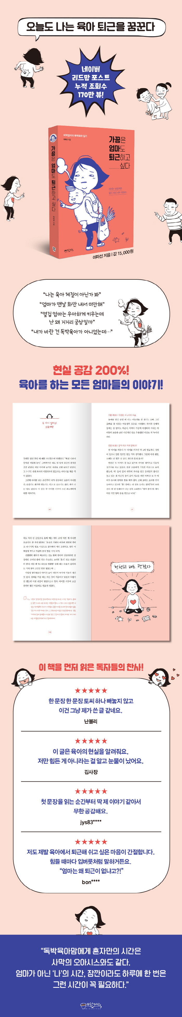 8³â° À°¾Æ¸¦ Çϰí ÀÖÁö¸¸ ¿©ÀüÈ÷ ¡®Ãʺ¸¸¾¡¯À̰í, ±âº»ÀûÀ¸·Î Ȱ¡ ÀáÀçµÇ¾î ÀÖ´Â ¡®¹ö·°¸¾¡¯À̸ç, ¹Ù»Û ³²ÆíÀ» ´ë½ÅÇØ µÎ ¾ÆÀ̸¦ µ¹º¸´Â ¡®98% µ¶¹ÚÀ°¾Æ¸¾¡¯À̱⵵ ÇÏ´Ù. ¶ÇÇÑ ¸Å ¼ø°£ ¡®ÁÁÀº ¾ö¸¶¡¯°¡ µÇ°í ½ÍÁö¸¸ ¸ÅÀÏ ¹Ý¼º°ú ´ÙÁüÀ» ¹Ýº¹ÇÏ´Â ¡®³ª»Û ¾ö¸¶¡¯´Ù. À°¾Æ¸¦ ÇÏ¸ç ¾Ë°Ô µÈ ¿©·¯ °æÇè°ú °¨Á¤À» ¸¹Àº ºÎ¸ðµé°ú °øÀ¯ÇϰíÀÚ <¸®µå¸¾>ÀÇ Àαâ ÄÜÅÙÃ÷ ¡®µ¶¹ÚÀ°¾Æ¸¾ÀÇ ¾Ö Ű¿ì´Â À̾߱⡯¿¡ ¿¡¼¼À̸¦ ¿¬ÀçÇϰí ÀÖÀ¸¸ç, °ú°Å¿¡´Â ¡®¾ö¸¶ÀÇ Åº»ý¡¯ ½Ã¸®Áî·Î ¿¡¼¼À̸¦ ¹ßÇàÇÑ ¹Ù ÀÖ´Ù.