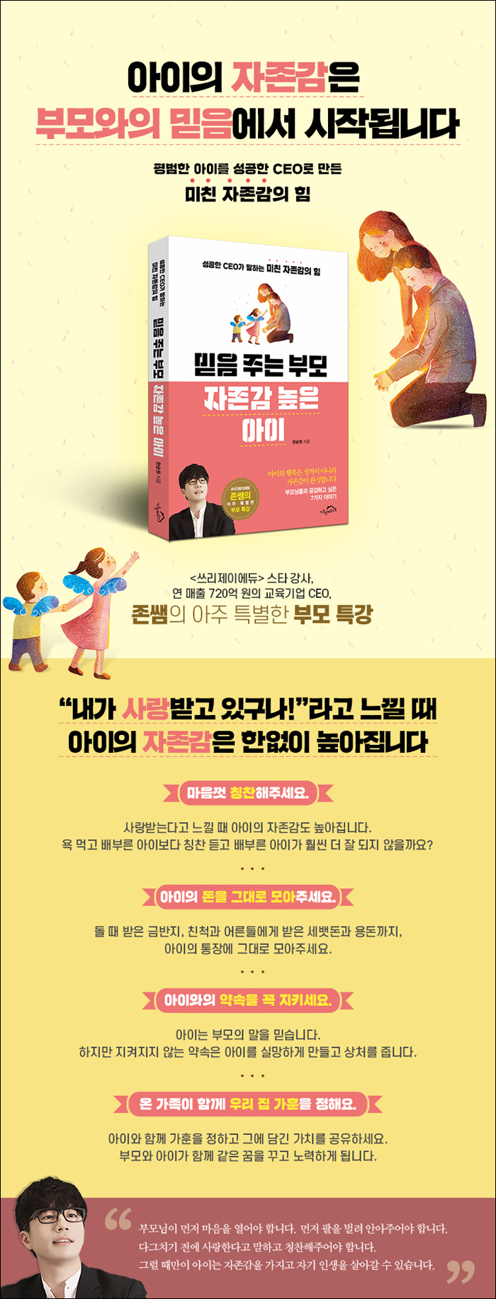 ÇÐâ ½ÃÀý, °øºÎ¸¦ ÀßÇÑ Àû ¾ø°í ƯÃâ³ Àç´Éµµ ¾ø´Â Æò¹üÇÑ ¾ÆÀÌ¿´´Ù. ÇÏÁö¸¸ ÀÚÁ¸°¨ Çϳª¸¸ÅÀº ´©±¸ ¸øÁö¾Ê¾Ò´Ù. â¾÷ 8³â ¸¸¿¡ ¿¬ ¸ÅÃâ 720¾ï ¿ø(2019³â ¿¹»ó)ÀÇ ±³À°±â¾÷À» Àϱų»°í, »ç¾÷À» ÇÏ´Â µ¿¾È ½¢ÇÏ°Ô Ã£¾Æ¿Â À§±â¿¡µµ ÁÂÀýÇÏÁö ¾ÊÀ» ¼ö ÀÖ¾ú´ø ÀÌÀ¯. ±×°ÍÀº ¹Ù·Î ºÎ¸ð´Ô²² ¹ÞÀº ¹Øµµ ³¡µµ ¾ø´Â ¡®¹ÌÄ£ ÀÚÁ¸°¨¡¯ ´öºÐÀ̶ó°í ÁÖÀú ¾øÀÌ ¸»ÇÑ´Ù. ±×¸®°í Æ´³¯ ¶§¸¶´Ù ºÎ¸ð¿Í ÀÚ³à °£ÀÇ ½Å·Ú Çü¼ºÀÌ ¾î¶² ±âÀûÀ» ³ºÀ» ¼ö ÀÖ´ÂÁö ÀüÇϰí ÀÖ´Ù.