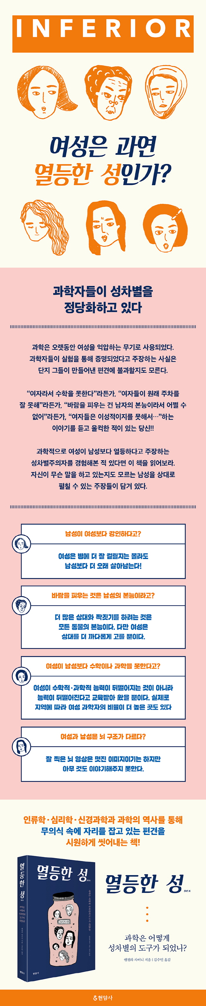 ÀÌ Ã¥À» ÀÐÀ¸¸é¼ ºÒÆíÇÑ °¨Á¤À» ´À³¥ ¼öµµ ÀÖ´Ù. Áø½ÇÀº ¶§¶§·Î »ç¶÷µéÀÌ ¿øÇÏ´Â °Íº¸´Ù ´õ ¾Ï¿ïÇÒ ¼ö ÀÖ°í, °úÇÐÀû Á¶»ç°¡ Ç×»ó ¿ì¸®°¡ ¿øÇÏ´Â °ÍÀ» ¸»ÇØÁÖÁö´Â ¾Ê±â ¶§¹®ÀÌ´Ù. ±×·¯³ª ÀÌ Ã¥Àº ÇöÀç Àϰí ÀÖ´Â ³íÀï°ú ¿©¼ºÀÌ ¿µîÇÏÁö ¾Ê´Ù´Â Áõ°Å¸¦ ¼³¸íÇÏ¸ç ¿©¼ºÀÇ ¸¶À½°ú ¿µÈ¥À» À§ÇÑ ¾¹¾µÇÑ °úÇÐÀû ÅõÀïÀ» ¿¬´ë¼øÀ¸·Î ±â·ÏÇϰí ÀÖ´Ù. ³»°Ô ÀÌ ÅõÀïÀº Æä¹Ì´ÏÁòÀÌ °³Ã´ÇØ¾ß ÇÒ ¸¶Áö¸· ³²Àº ¿µ¿ªÀ» »ó¡ÇÑ´Ù. ¹Ù·Î ¿©¼ºÀÇ ¿ÏÀüÇÑ ÆòµîÀ» ¹æÇØÇÏ´Â ¿ì¸® ¸¶À½¼ÓÀÇ °Å´ëÇÑ À庮À» ¹«³Ê¶ß¸± ÀáÀç·Â ¸»ÀÌ´Ù. - º»¹® 28ÂÊ