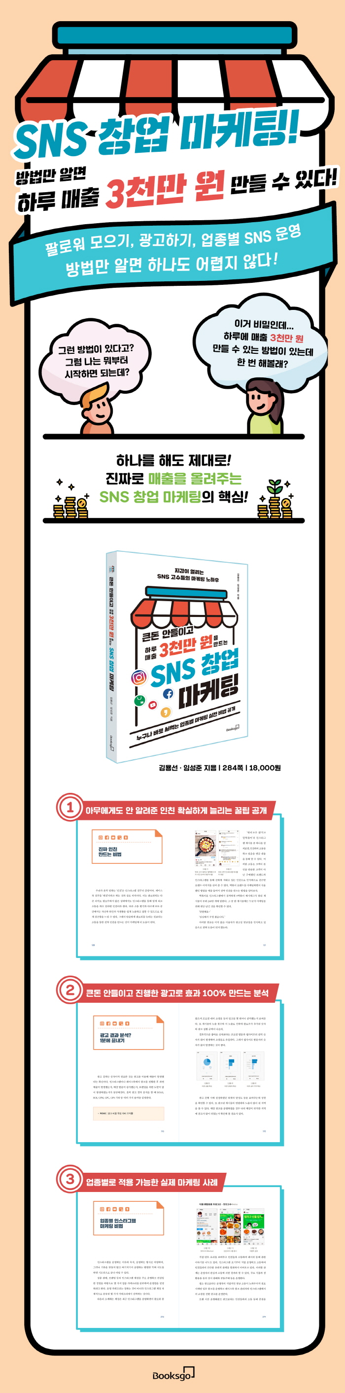 ¡¶Å«µ· ¾ÈµéÀ̰í ÇÏ·ç ¸ÅÃâ 3õ¸¸ ¿øÀ» ¸¸µå´Â â¾÷ ¸¶ÄÉÆÃ¡·Àº ´çÀå ½á¸ÔÀ» ¼ö ¾ø°í ´©±ºÁö Àß ¸ð¸£´Â »ç¶÷ÀÇ °ÅâÇÑ ¼º°ø½ÅȰ¡ ¾Æ´Ï¶ó ÇϳªºÎÅÍ ¿±îÁö ½ÇÀü¿¡¼ ½á¸ÔÀ» ¼ö ÀÖ´Â ¸¶ÄÉÆÃ ¿î¿µ ¹æ¹ýÀ» ´ã°í ÀÖ´Ù. ÆÈ·Î¿ö¸¦ ´Ã¸®´Â ¹ý, ÆÈ·Î¿ö¿Í ¼ÒÅëÇÏ´Â ¹ý, ±¤°í¸¦ ÁøÇàÇÏ°í ±¤°í °á°ú¸¦ ºÐ¼®ÇÏ´Â ¹ý, ¾÷Á¾º° ½ÇÁ¦ ¿î¿µ »ç·Ê±îÁö, ÀÌ Ã¥Àº ´çÀå SNS â¾÷À» À§ÇÑ ¸¶ÄÉÆÃÀ» ½ÃÀÛÇÏ´Â »ç¶÷ÀÌ ±Ã±ÝÇØ ÇÒ Á¤º¸¸¦ ÇϳªÇϳª ¼³¸íÇØÁÖ°í ÀÖ´Ù. ´©±¸³ª ¹æ¹ý¸¸ ¾Ë¸é ¾ó¸¶µçÁö ½ÇÁ¦ ¿î¿µ¿¡ Àû¿ëÇÒ ¼ö ÀÖÀ¸¸ç, Å«µ·À» µéÀÌÁö ¾Ê°íµµ ¿øÇÏ´Â ¼º°øÀ» SNS ¸¶ÄÉÆÃÀ¸·Î ÀÌ·ç¾î ³ª°¡±æ ¹Ù¶õ´Ù.