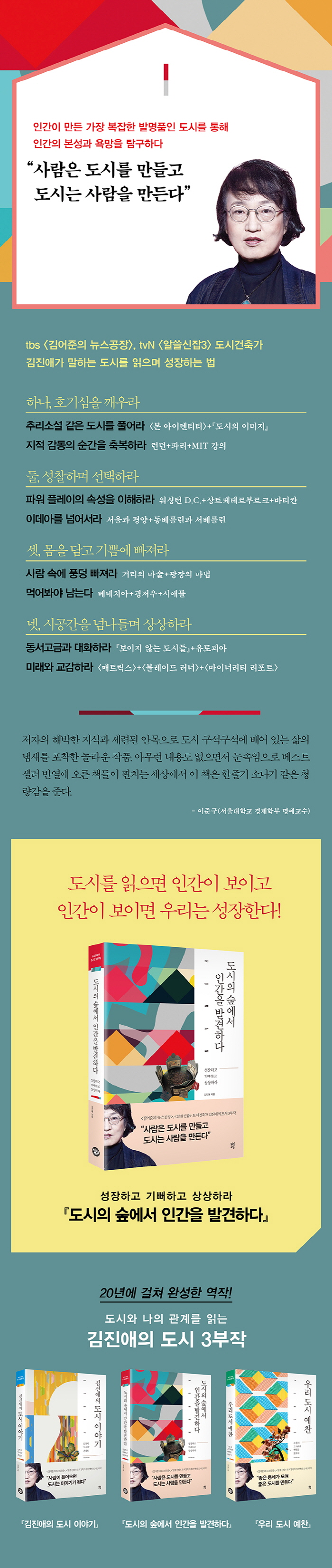 »ç¶÷Àº µµ½Ã¸¦ ¸¸µé°í µµ½Ã´Â »ç¶÷À» ¸¸µç´Ù. ¡®µµ½Ã´Â Àü¹®°¡°¡ ¸¸µé°í ³ª´Â »ì°í ÀÖÀ» »ÓÀÌ´Ù¡¯¶ó°í »ý°¢ÇÏ¸é ¿À»êÀÌ´Ù. ÇÑ µµ½ÃÀÇ ½Ã¹ÎÀ¸·Î¼ ´ç½ÅÀÌ ÇÏ´Â ÀÏ»óÀÇ ÇàÀ§ ÇϳªÇϳª°¡ µµ½Ã¸¦ ¸¸µç´Ù. ¾î¶² ÁýÀ» ¼±ÅÃÇÏ´À³Ä, ¾î¶² ±æÀ» °È´À³Ä, ¾î¶² ÀÏÀ» ÇÏ´À³Ä, ¾î¶² ¹°°ÇÀ» »ç´À³Ä, ¹«¾ùÀ» ¸Ô´À³Ä, ¾î¶»°Ô ³ë´À³Ä µî ÀÌ ¸ðµç ÇàÀ§µéÀÌ µµ½Ã¸¦ ¸¸µç´Ù. µµ½Ã´Â ¼ö¸¹Àº »ç¶÷µéÀÌ ¼ö¸¹Àº µ¿±â¿¡ µû¶ó ¸ÅÀϸÅÀÏ ¿òÁ÷ÀÌ¸é¼ ¿À·£ ½Ã°£¿¡ °ÉÃÄ ¸¸µç´Ù´Â Á¡¿¡¼, »ç¶÷ÀÌ ¸¸µå´Â °Í Áß¿¡ °¡Àå º¹ÀâÇÑ ´ë»óÀ̶ó°í ÇÒ ¸¸ÇÏ´Ù. ¡®µµ½Ã¶õ Àΰ£ÀÌ ¸¸µå´Â ÃÖ°íÀÇ ¹®È ÇüÅ¡¯¶ó´Â ¸»Àº ÃæºÐÈ÷ ¼³µæ·ÂÀÌ ÀÖ´Ù.