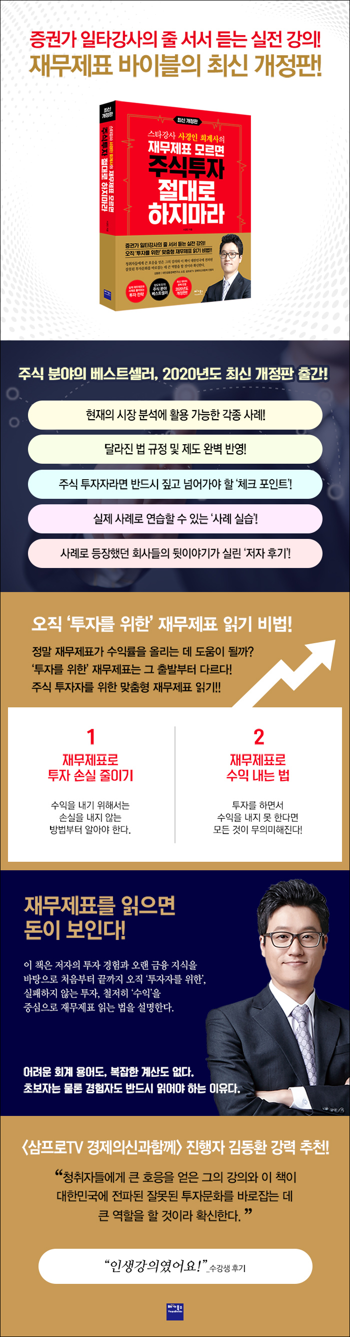 ±î´Ù·Ó±â·Î À¯¸íÇÑ Áõ±Ç»ç Á÷¿øµéÀÌ ±×ÀÇ °ÀǸ¦ ÀÎÁ¤ÇÏ´Â °ÍÀº ¹Ù·Î »ì¾Æ ÀÖ´Â Áö½ÄÀ» ÀüÇϱ⠶§¹®ÀÌ´Ù. ¡®¼öÀÍÀ» ³¾ ¼ö ¾ø´Ù¸é ¾µ¸ð¾ø´Â Áö½Ä¡¯À̶ó´Â ½Å³äÇÏ¿¡ ±× ÀÚ½ÅÀÌ ÅõÀÚÀڷμ ²ÙÁØÈ÷ ¼öÀÍÀ» ³»°í ÀÖ´Ù. À̸¦ ¹ÙÅÁÀ¸·Î Çб³¿¡¼ ¹è¿ì´Â ÀÌ·ÐÀÌ ¾Æ´Ñ, »ì¾Æ ÀÖ´Â »ç·Ê¿Í ½ÇÁ¦ Àû¿ë °¡´ÉÇÑ ¹æ¹ýµéÀ» Á¦½ÃÇÑ´Ù. ȸ°è¹ýÀο¡¼ ½×Àº °¨»ç¿Í ÄÁ¼³ÆÃ °æÇè, Áõ±Ç¾÷°è¿ÍÀÇ ²÷ÀÓ¾ø´Â ±³·ù ¹× ÅõÀÚ°æÇèÀ¸·Î ÀÎÇØ ÀڽŸ¸ÀÇ ½Ã¾ß¸¦ °®Ãß°Ô µÇ¾ú´Ù. ¿À·¡ ÀüºÎÅÍ Ã¥À» ½á´Þ¶ó´Â ¿äûÀ» ¹Þ¾ÒÁö¸¸, 3°³¿ù ÀüºÎÅÍ ¹Ì¸® ¿äûÀÌ µé¾î¿À´Â °ÀÇÀÏÁ¤À» Çΰè·Î ½ÇÇà¿¡ ¿Å±âÁö ¸øÇß´Ù. ¡ºÀ繫Á¦Ç¥ ¸ð¸£¸é ÁÖ½ÄÅõÀÚ Àý´ë·Î ÇÏÁö¸¶¶ó¡»´Â ÀúÀÚ°¡ ¼º´ë°áÀý·Î ÀÎÇØ 10³â ¸¸¿¡ °ÀǸ¦ ½¬¸é¼ ÁýÇÊÇÑ °ÍÀ¸·Î ÀϹÝÀο¡°Ô´Â óÀ½À¸·Î °ø°³ÇÏ´Â ³»¿ëÀÌ´Ù.