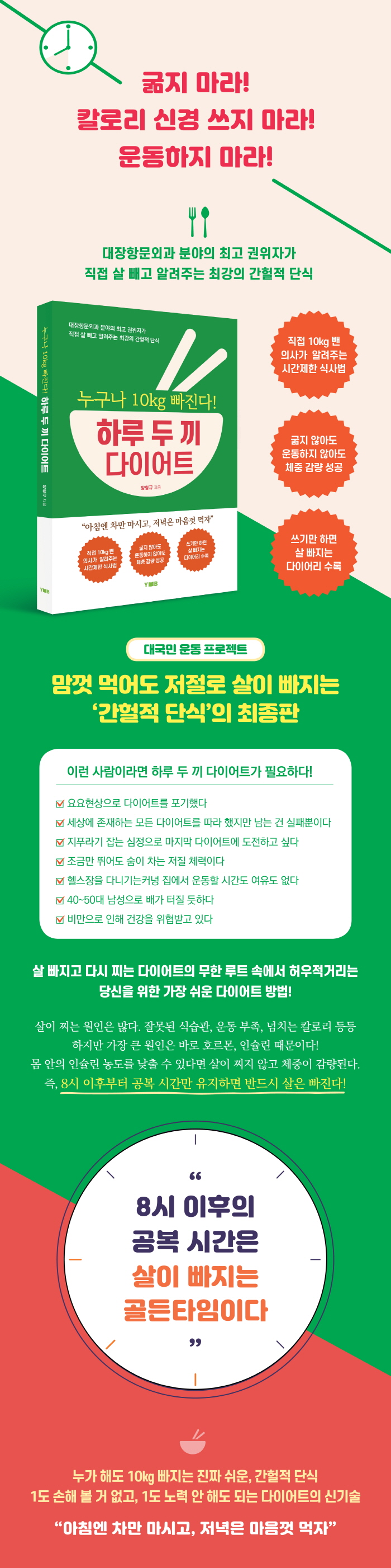 ´ëÇѹα¹¿¡¼ ³»·Î¶óÇÏ´Â ´ëÀåÇ×¹®¿Ü°ú Àü¹®ÀÇÀÌÀÚ ÀÇÇйڻç. ¿¬¼¼´ëÇб³ Àǰú´ëÇÐÀ» Á¹¾÷Çϰí, µ¿ ´ëÇпø¿¡¼ ¹Ú»ç°úÁ¤À» ¼ö·áÇß´Ù. 1986³â ±¸¸®½Ã¿¡ ¾ç¿Ü°ú, 1996³â ³²¾çÁֽà ±Ý°îµ¿¿¡ ¾çº´¿ø, 2005³â ¼¿ï °µ¿±¸¿¡ ¼¿ï¾çº´¿øÀ» °³¿øÇØ ÇöÀç ÀÇ·á¿øÀåÀ¸·Î °æ¿µ°ú ȯÀÚ Áø·á, ¼ö¼úÀ» Çϰí ÀÖÀ¸¸ç ´ëÇÑ´ëÀåÇ×¹®ÇÐȸ ¼ö¼® ºÎȸÀåÀ» Áö³Â´Ù. ÅëÁõÀÌ ±ØÈ÷ ÀûÀº °Å»óÁ¡¸·ÇÏÀýÁ¦¼úÀ» °³¹ßÇÑ ÈÄ ±â¼ú°ú ¼ö¼ú µ¿¿µ»ó µî ¸ðµç ¼ú±â¸¦ ´ãÀº ÀÇ·á Àü¹®¼Àû ¡ºÄ¡ÇÙ¡»À» ÁýÇÊÇØ ÈĹè ÀÇ»çµé¿¡°Ô Á¸°æÀ» ¹Þ°í ÀÖ´Ù. ÀÌ Ã¥Àº ¹Ì±¹ ½ºÇÁ¸µ°Å ÃâÆÇ»ç¿¡¼ ¿µ¹® ¡ºHemorrhoids¡»·Î ÃâÆÇµÉ Á¤µµ·Î ÀÎÁ¤¹Þ´Â ÀÇ·á ¼ÀûÀÌ´Ù. ±¾Áö ¾Ê°í, ¿îµ¿ÇÏÁö ¾Ê°í 7°³¿ù ¸¸¿¡ 89kg¿¡¼ 79kg±îÁö 10kgÀ» Á÷Á¢ üÁß °¨·®ÇÑ ÈÄ ¸¹Àº À̵鿡°Ô ±× ºñ¹ýÀ» ÀüÇϰíÀÚ ÀÌ Ã¥À» ÁýÇÊÇß´Ù. ¾ÆÄ§½Ä»ç ´ë½Å ³ìÂ÷¸¦ ¸¶½Ã°í, Á¡½É°ú Àú³á¿¡´Â ¸¶À½²¯ ½Ä»çÇØµµ 8½Ã ÀÌÈÄ °øº¹ ½Ã°£¸¸ À¯ÁöÇϸé 100% »ìÀÌ ºüÁö´Â °£ÇæÀû ´Ü½ÄÀÇ ºñ¹ýÀ» ´ã¾Ò´Ù. ÇÏ·ç µÎ ³¢ ´ÙÀÌ¾îÆ® ¹æ¹ýÀ» ÅëÇØ Àü ±¹¹ÎÀÌ ºñ¸¸ 0%°¡ µÉ ¶§±îÁö ´ë±¹¹Î¿îµ¿ ÇÁ·ÎÁ§Æ®·Î ºñ¸¸À» ÅðÄ¡Çϰڴٴ ±â¿°À» ÅäÇϰí ÀÖ´Ù. Àú¼·Î´Â ¡ºÄ¡Áú ¹é°ú¡», ¡ºHemorrhoids(½ºÇÁ¸µ°Å)¡», ¡º´ëÀå¾Ï »Ñ¸® »Ì±â¡», ¡ºº¯ºñ »Ñ¸® »Ì±â¡», ¡º´ÚÅÍ °Ç°°ËÁø¡» µî 20¿© ±ÇÀÌ ÀÖ´Ù.