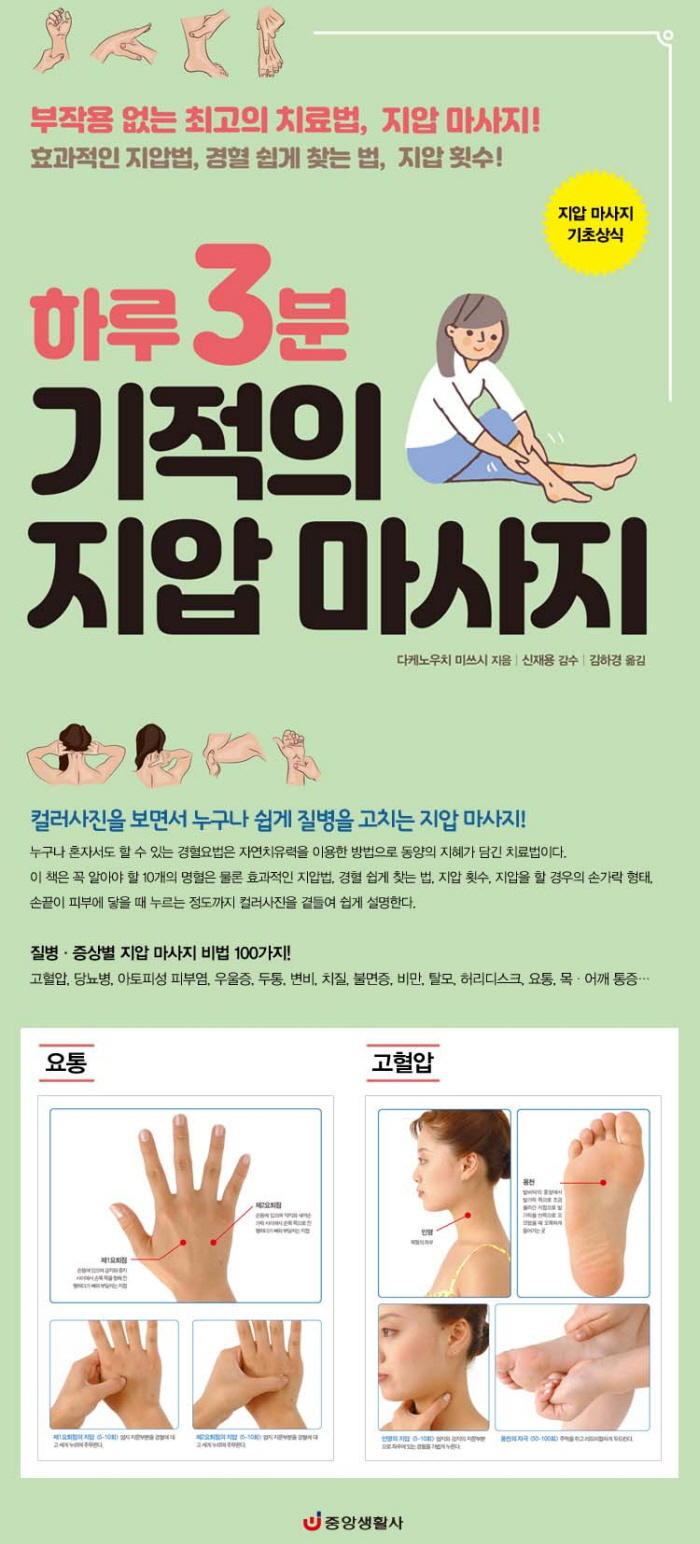 ´©±¸³ª È¥ÀÚ¼µµ ÇÒ ¼ö ÀÖ´Â °æÇ÷¿ä¹ýÀº ÀÚ¿¬Ä¡À¯·ÂÀ» ÀÌ¿ëÇÑ ¹æ¹ýÀ¸·Î µ¿¾çÀÇ ÁöÇý°¡ ´ã±ä Ä¡·á¹ýÀÌ´Ù. °£´ÜÇÑ ¿ä·É¸¸ ¾Ë¸é ºÎÀÛ¿ëÀÌ ¾ø´Â ³î¶ó¿î È¿°ú¸¦ ¾òÀ» ¼ö ÀÖ´Â ÀÌ Ã¥Àº ²À ¾Ë¾Æ¾ß ÇÒ 10°³ÀÇ ¸íÇ÷Àº ¹°·Ð È¿°úÀûÀÎ Áö¾Ð¹ý, °æÇ÷ ½±°Ô ã´Â ¹ý, Áö¾Ð Ƚ¼ö, Áö¾ÐÀ» ÇÒ °æ¿ìÀÇ ¼Õ°¡¶ô ÇüÅÂ, ¼Õ³¡ÀÌ ÇǺο¡ ´êÀ» ¶§ ´©¸£´Â Á¤µµ±îÁö Ä÷¯»çÁøÀ» °çµé¿© ½±°Ô ¼³¸íÇÑ´Ù.