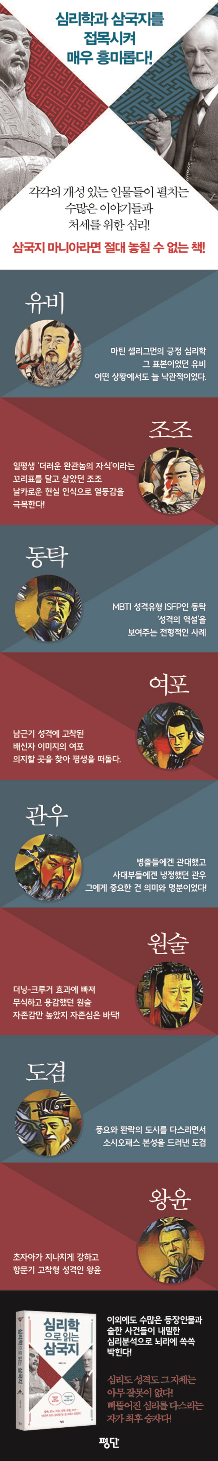 Ȳ°ÇÀûÀÇ ³ÀÌ ¸Î¾îÁØ À¯ºñ, °ü¿ì, Àåºñ »ïÇüÁ¦ÀÇ µµ¿ø°áÀǺÎÅÍ, ¹Ýµ¿Å¹ ¿¬ÇÕ±ºÀÇ °á¼º°ú ¿ÍÇØ, ¹é¸¶´ëÀü, °üµµ´ëÀü, Àûº®´ëÀü, À̸ª´ëÀü µî ±½Á÷±½Á÷ÇÑ ÀüÅõµéÀÇ Áö·« ¹× ½É¸® ½Î¿ò, ÃÖÈÄ ½ÂÀÚ Á¶Á¶¿Í »ç¸¶Àǰ¡ ¿¾î°¥ ÅëÀϽôëÀÇ Àü¾ß±îÁö, Áß±¹ ÈÄÇÑ ¸»ºÎÅÍ À§․ÃË․¿À »ï±¹½Ã´ë, ±×¸®°í À̸¦ ÅëÀÏÇÑ Áø³ª¶ó °³±¹±îÁöÀÇ ¿¡ÇǼҵ带 ÃÑ 9°³ÀÇ Ã©ÅÍ·Î ´Ü ÇÑ ±Ç¿¡ ±ò²ûÇÏ°Ô Á¤¸®Çß´Ù. ¿©·¯ ¿ª»çÃ¥À» ¹ÙÅÁÀ¸·Î ÇßÁö¸¸, ¼Ò¼³ ¡¶»ï±¹Áö¿¬ÀÇ¡·ÀÇ ¼³Á¤À» Â÷¿ëÇØ ¼Ò¼³ °°Àº ±ØÀû ±äÀå°¨À» À¯ÁöÇß°í, Çö´ë °¨°¢¿¡ ¸Â´Â ÇØ¼®°ú Ç¥ÇöÀ¸·Î Á÷°üÀûÀÎ ÀÌÇØ¸¦ Ãß±¸ÇßÀ¸¸ç, ¹è°æ ¼³¸íÀÌ ÇÊ¿äÇÑ ºÎºÐÀº ÁÖ¼®À¸·Î º¸ÃæÇØ ¿ª»ç¼·Îµµ ¼Õ»öÀÌ ¾ø°Ô Çß´Ù. ÇÁ·ÎÀÌÆ®, Ä® À¶ µî Á¤½ÅºÐ¼®ÇÐÀÇ ´ë°¡ºÎÅÍ, ¸¶Æ¾ ¼¿¸®±×¸Õ, Ç ¸Ó·¹ÀÌ, ºê¸¯½º ¸¶À̾, Á¶Áö Çã¹öÆ® ¹Ìµå, ¿ùÅÍ ¹Ì¼¿ µî Çö´ë ½É¸®ÇÐÀÚµéÀÇ ÀÌ·ÐÀ» ÅëÇØ »ï±¹Áö Àι°µéÀ» ºÐ¼®Çß´Ù. °¢ éÅÍ µµÀԺο¡´Â ÁÖ¿ä ¿ª»çÀû »ç°ÇÀ» º°µµ Á¤¸®Çϰí, ¼ÒÁ¦¸ñÀÌ ³¡³ª´Â °÷¸¶´Ù Àι°µéÀÇ ¼º°ø ½É¸®¸¦ ¿ä¾àÇÏ´Â µî ¾î·Æ°í º¹ÀâÇÑ »ï±¹Áö¸¦ µ¶ÀÚ ³ª¸§´ë·Î ÀÌÇØÇϰí Á¤¸®ÇÏ´Â µ¥ µµ¿òÀÌ µÉ ÀåÄ¡µéÀ» °÷°÷¿¡ ¸¶·ÃÇØµÎ¾ú´Ù. Àç¹ÌÀÖ°Ô ÀоúÁö¸¸ ¹Ù·Î Àؾî¹ö¸®´Â »ï±¹Áö°¡ ¾Æ´Ñ, ÇÙ½ÉÀ» ±â·ÏÀ¸·Î ³²°Ü µÎ°íµÎ°í ²¨³»º¸°í Ȱ¿ëÇϰíÀÚ ÇÏ´Â µ¶ÀÚµéÀ» °Ü³ÉÇÑ ÄܼÁÆ®ÀÌ´Ù.