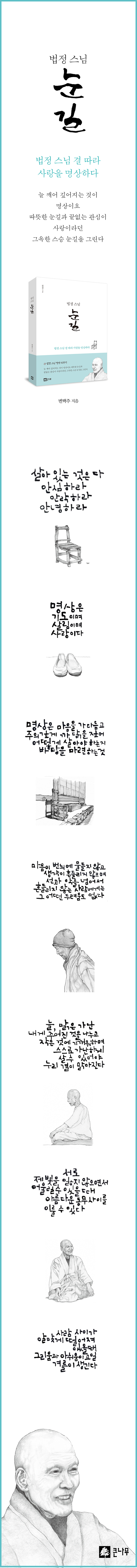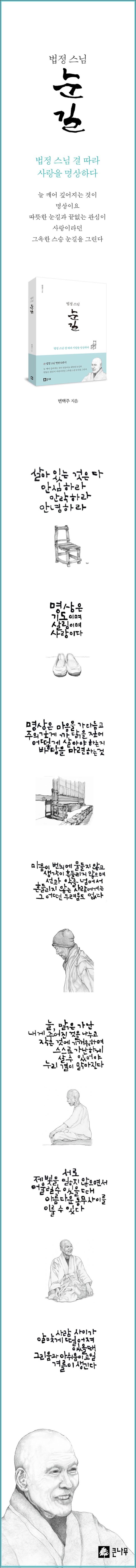 Æì³½ Ã¥À¸·Î´Â <¹ýÁ¤ ½º´Ô ¼û°á>°ú <¹ýÁ¤, ³ª¸¦ ¹°µéÀÌ´Ù>, <°¡½¿ÀÌ ºÎ¸£´Â ¸¸³²> ±×¸®°í <¹ýÁ¤ ½º´ÔÀ» ±×¸®´Ù ´Þ °°Àº ÇØ>°¡ ÀÖ´Ù.