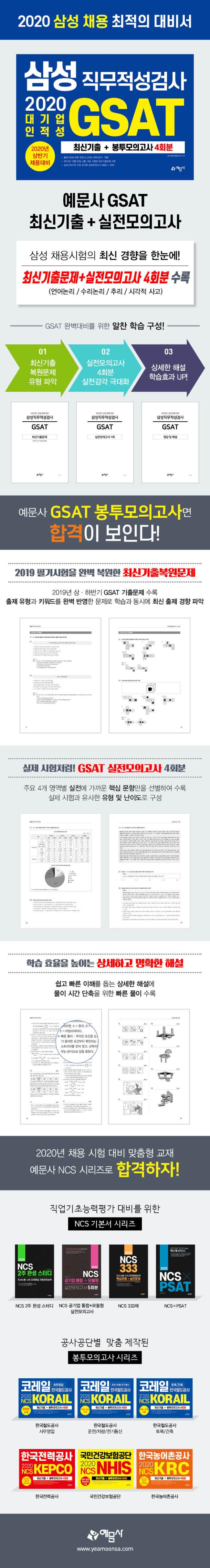 2019³â 10¿ù 20ÀÏ, 4¿ù 14ÀÏ ½ÃÇàµÈ GSAT ±âÃâ¹®Á¦¸¦ öÀúÇÏ°Ô º¹¿ø¡¤ºÐ¼®ÇØ Á¦ÀÛÇÑ ¡®ÃֽűâÃâ¹®Á¦¡¯¸¦ ¼ö·ÏÇÏ¿©, »ï¼º ä¿ëÀ» ÁغñÇÏ´Â ¼öÇè»ýµéÀÌ ÃֽаæÇâÀ» È®ÀÎÇϰí ÀÌ¿¡ ´ëºñÇÒ ¼ö ÀÖµµ·Ï ÇÏ¿´´Ù. ½ÇÁ¦ ½ÃÇè°ú °¡Àå À¯»çÇÑ ¹®Á¦·Î ÇöÀç ½Ç·ÂÀ» °¡´ÆÇغ¸°í ºü¸£°Ô ½Ç·ÂÀ» Çâ»ó½Ãų ¼ö ÀÖµµ·Ï ±¸¼ºÇÑ ½ÇÀü¸ðÀǰí»ç 4ȸºÐ Áö³ ½ÃÇèÀÇ ³À̵µ¿Í ÃâÁ¦ À¯ÇüÀ» Àû¿ëÇÑ ¹®Ç×À» ¼ö·ÏÇÏ¿´À¸¸ç, ´ä¾È ¸¶Å· ¿¬½ÀÀ» À§ÇÑ OMR Ä«µå¸¦ ¼ö·ÏÇÏ¿© ½ÇÀü¿¡ È®½ÇÈ÷ ´ëºñÇÒ ¼ö ÀÖ´Ù.