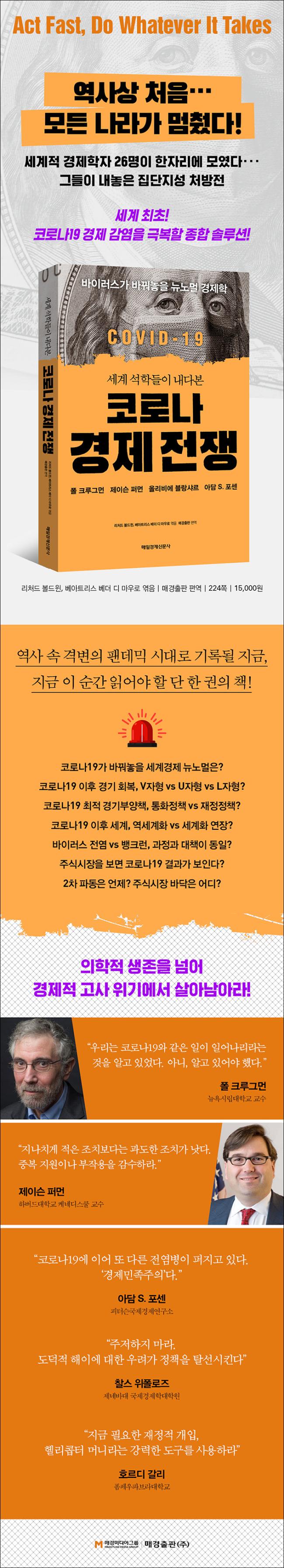 Àηù´Â ¾ðÁ¦³ª À§±â¸¦ À̰ܳ´Ù. À̹ø Äڷγª19 ¿ª½Ã ÈǸ¢È÷ ¹°¸®Ä¥ °ÍÀÌ´Ù. ¹®Á¦´Â ±× ÀÌÈÄÀÇ ¼¼»óÀÌ´Ù. ÀÌ Ã¥Àº ¼¼°èÀû ¼®ÇеéÀÌ ÆÒµ¥¹Í ÀÌÈÄÀÇ ¼¼°è¸¦ °æÁ¦Àû °üÁ¡¿¡¼ ÆÄÇìÄ£´Ù. Àü ¼¼°è°¡ À§±â¸¦ ÇÔ²² µ¹ÆÄÇÏ·Á¸é ¾î¶² ³ë·ÂÀ» ÇØ¾ß ÇÏ´ÂÁö, ±× Çö¸íÇÑ ´äÀÌ ´ã°Ü ÀÖ´Ù.